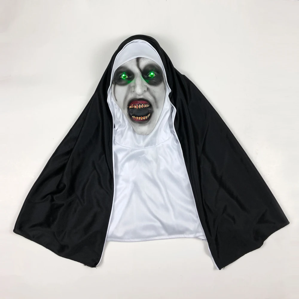 Светодиодный маска монашки ужасов Косплей страшные латексные маски валак с шарфом светодиодный светильник Вечерние Маски на Хэллоуин