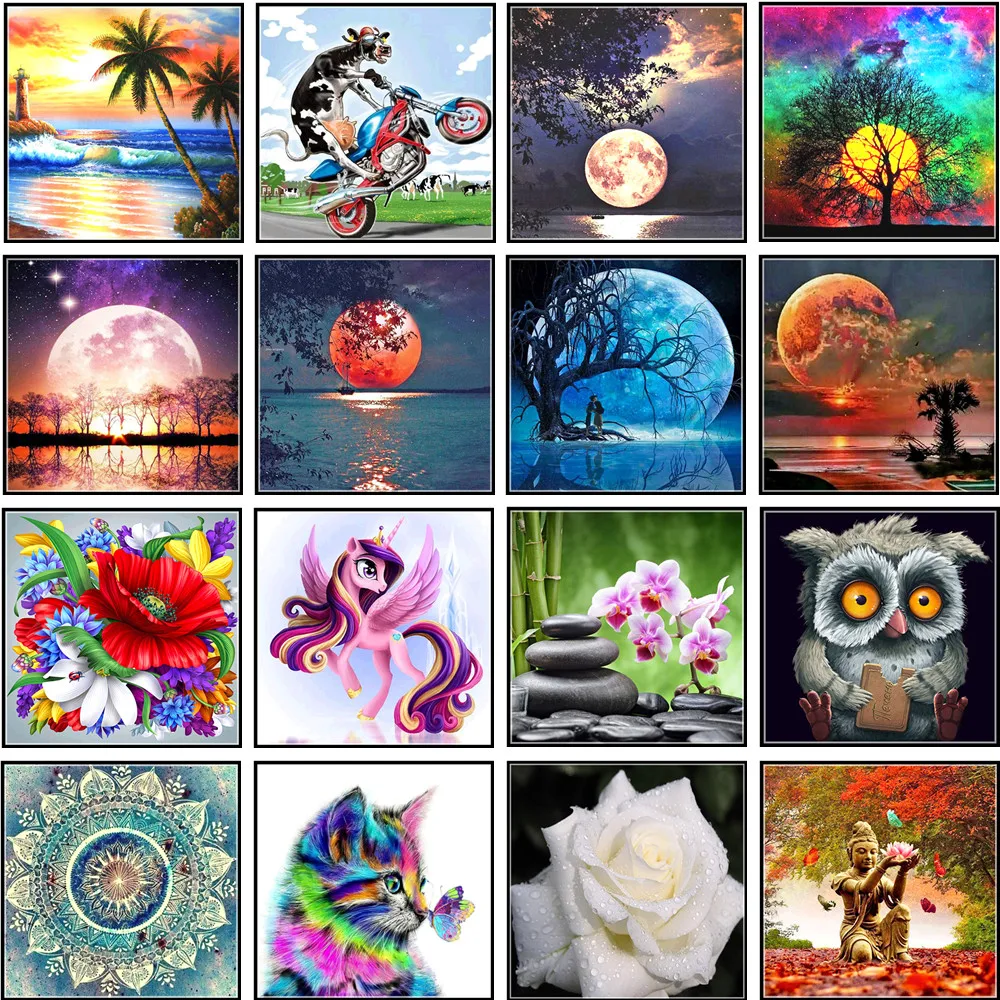 Алмазная 5D картина сделай сам, вышивка крестиком из круглых страз, мозаика с изображением пейзажа, животных, для взрослых и детей