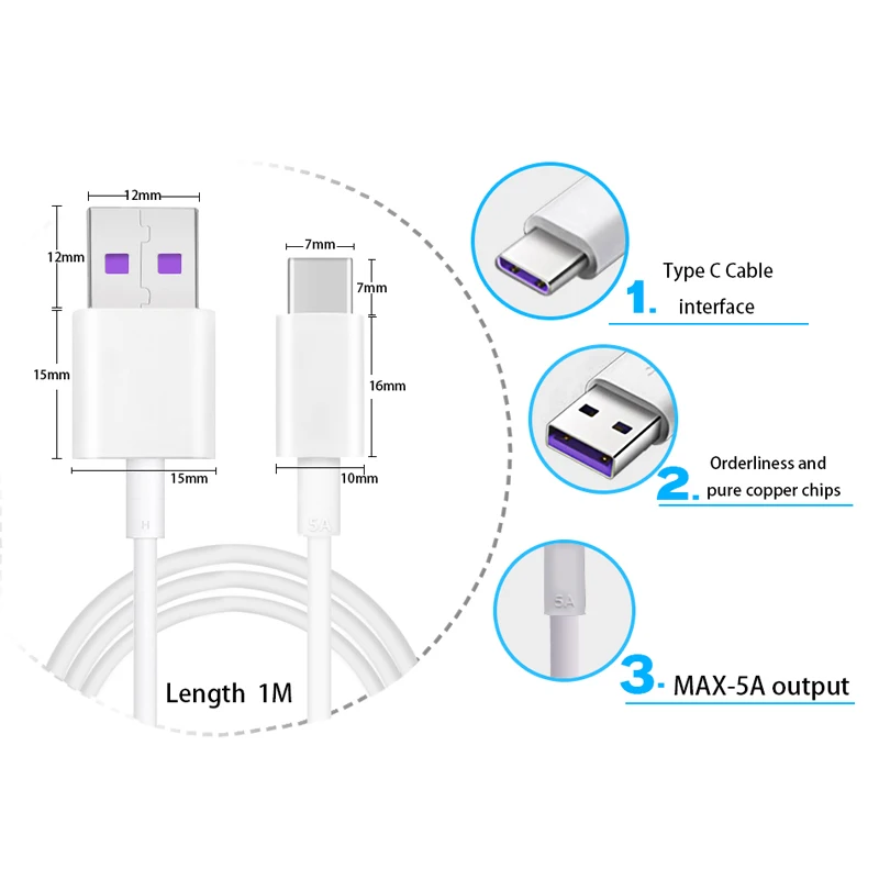 10 шт. суперзарядный кабель 5A USB C для Huawei, кабель USB A-Type ...