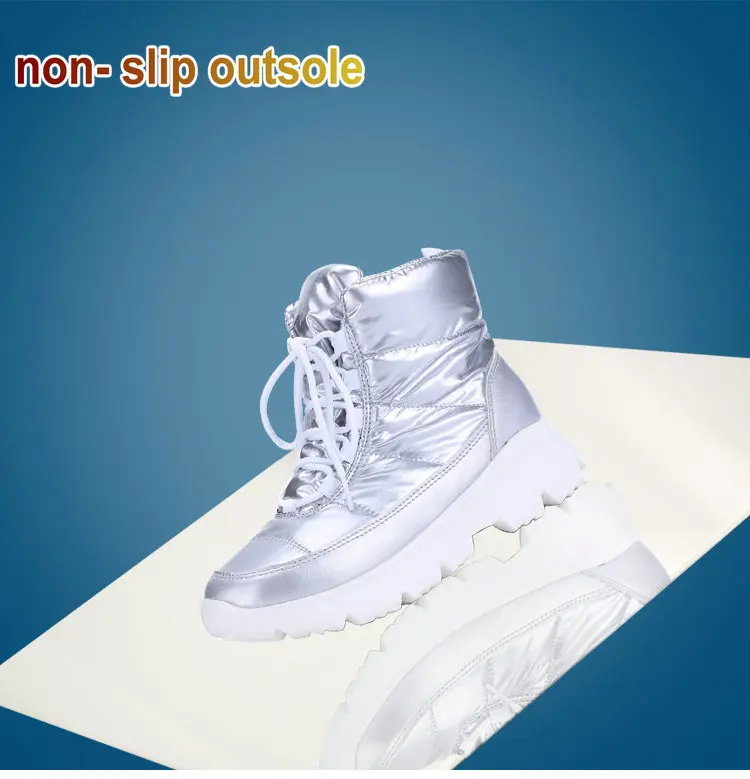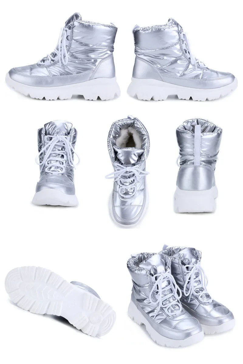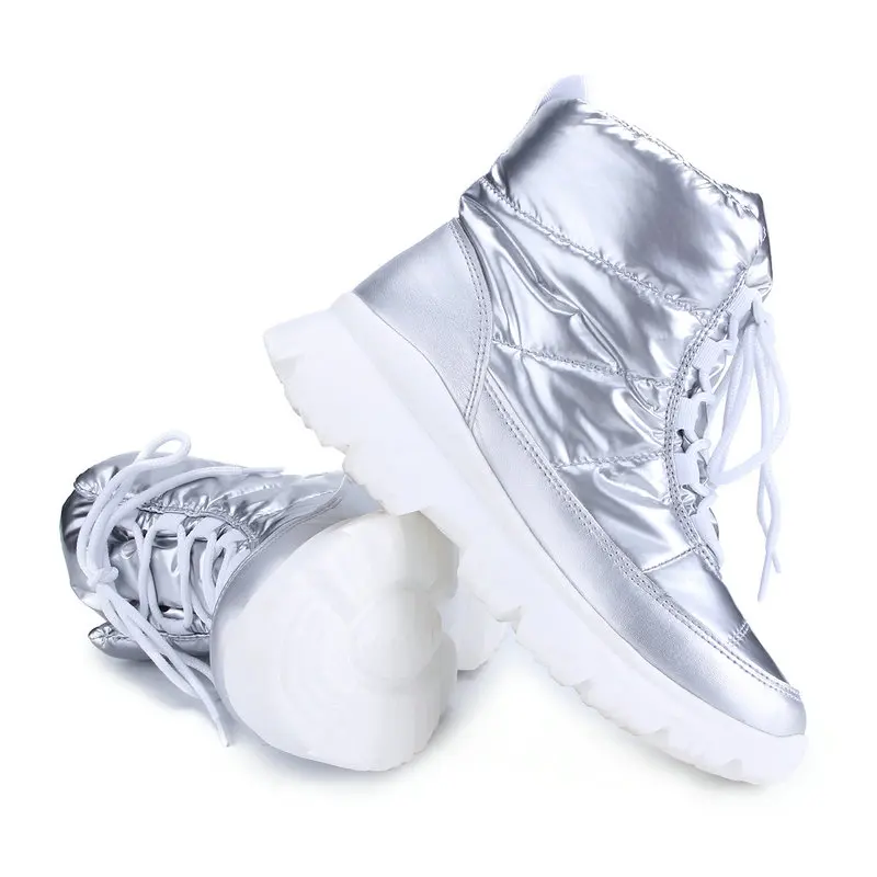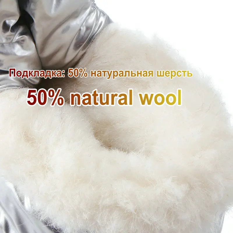 Ботинки женские, на шнуровке, серебристые, теплые, зимние, 50% натуральная шерсть