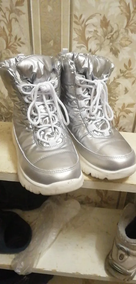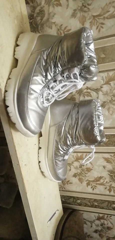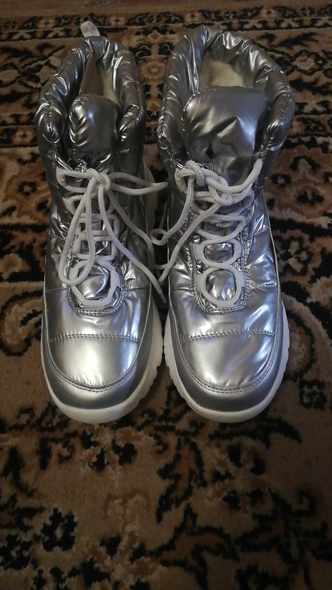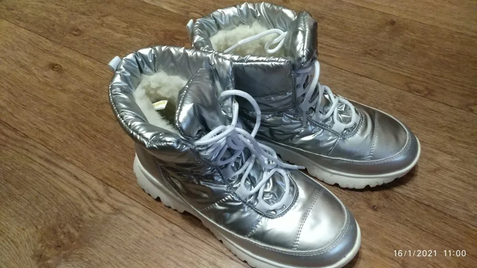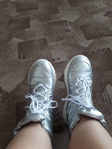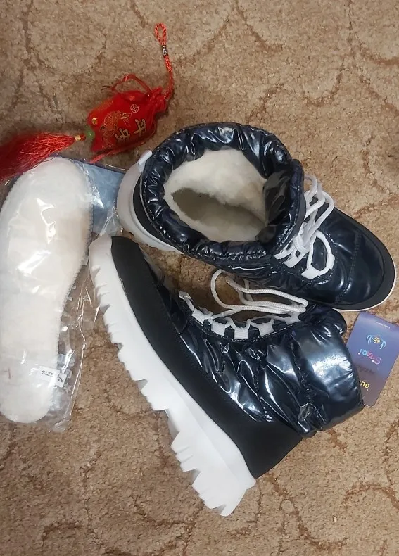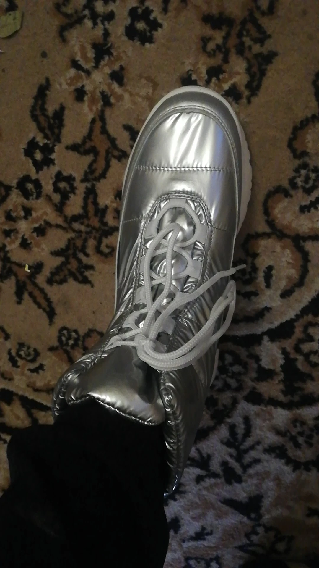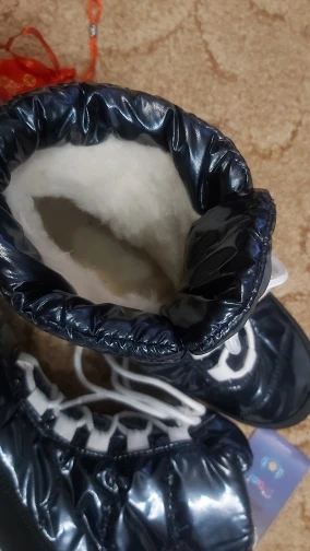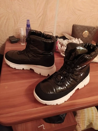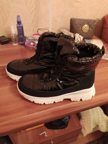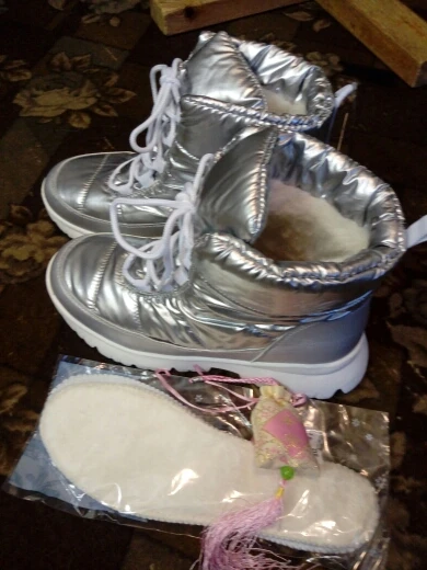 Ботинки понравились , уже опробовала при минус 10, тепло , ноги тёплые, размер подошёл отлично, моя длина стопы 25 см , российский 39 , отлично сели , не тяжёлые, стельки ещё одни положили тёплые. Единственное их материал, тот что блестит очень тонкий , как то напрягает, ощущение что потрескается быстро.