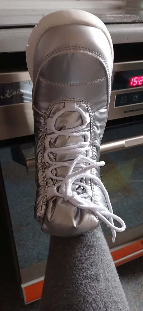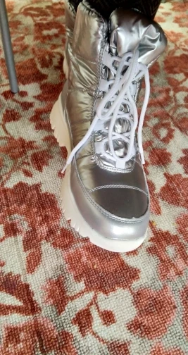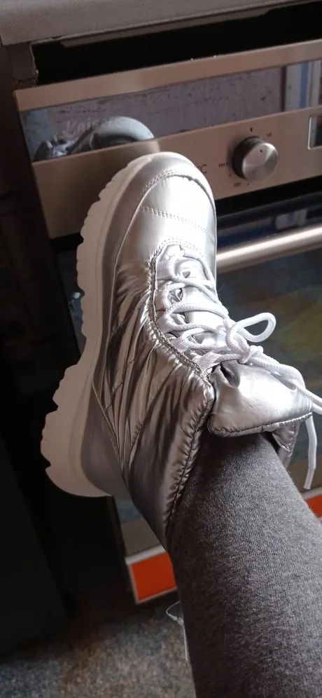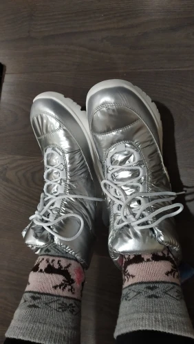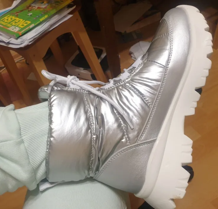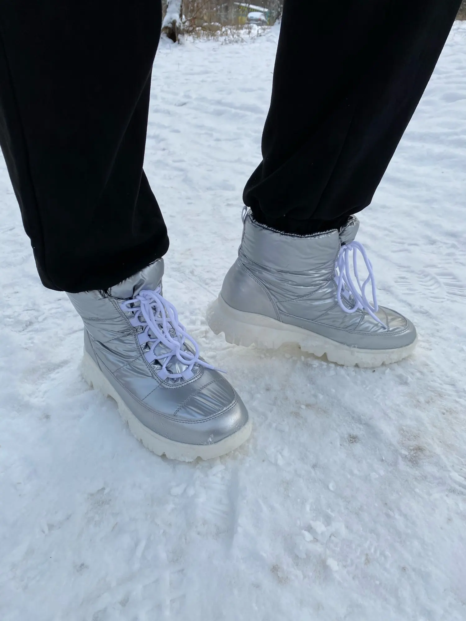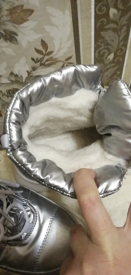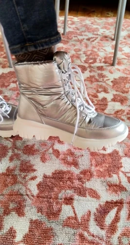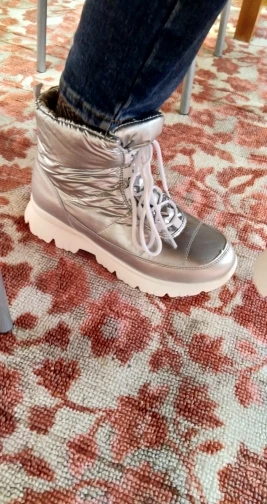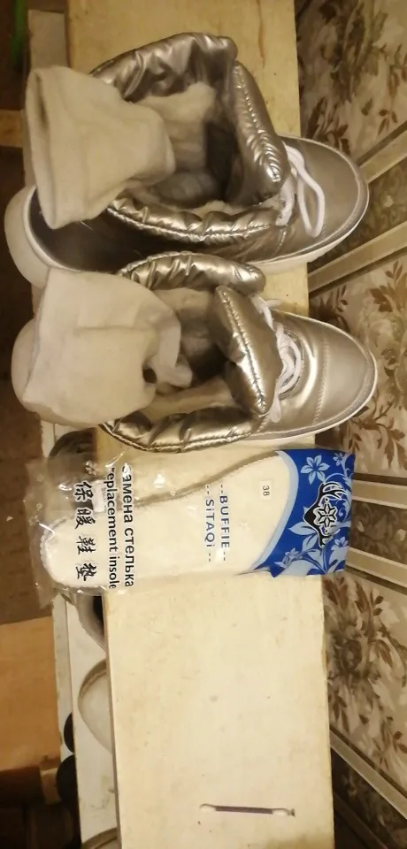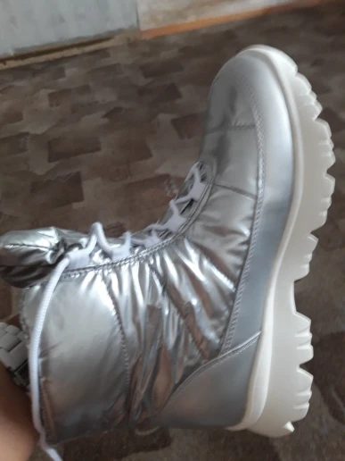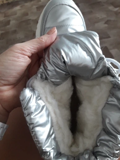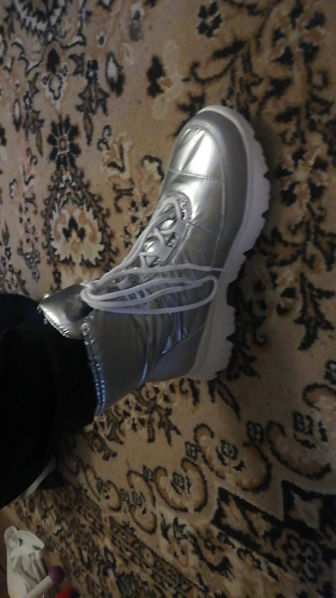 Ботинки понравились , уже опробовала при минус 10, тепло , ноги тёплые, размер подошёл отлично, моя длина стопы 25 см , российский 39 , отлично сели , не тяжёлые, стельки ещё одни положили тёплые. Единственное их материал, тот что блестит очень тонкий , как то напрягает, ощущение что потрескается быстро.