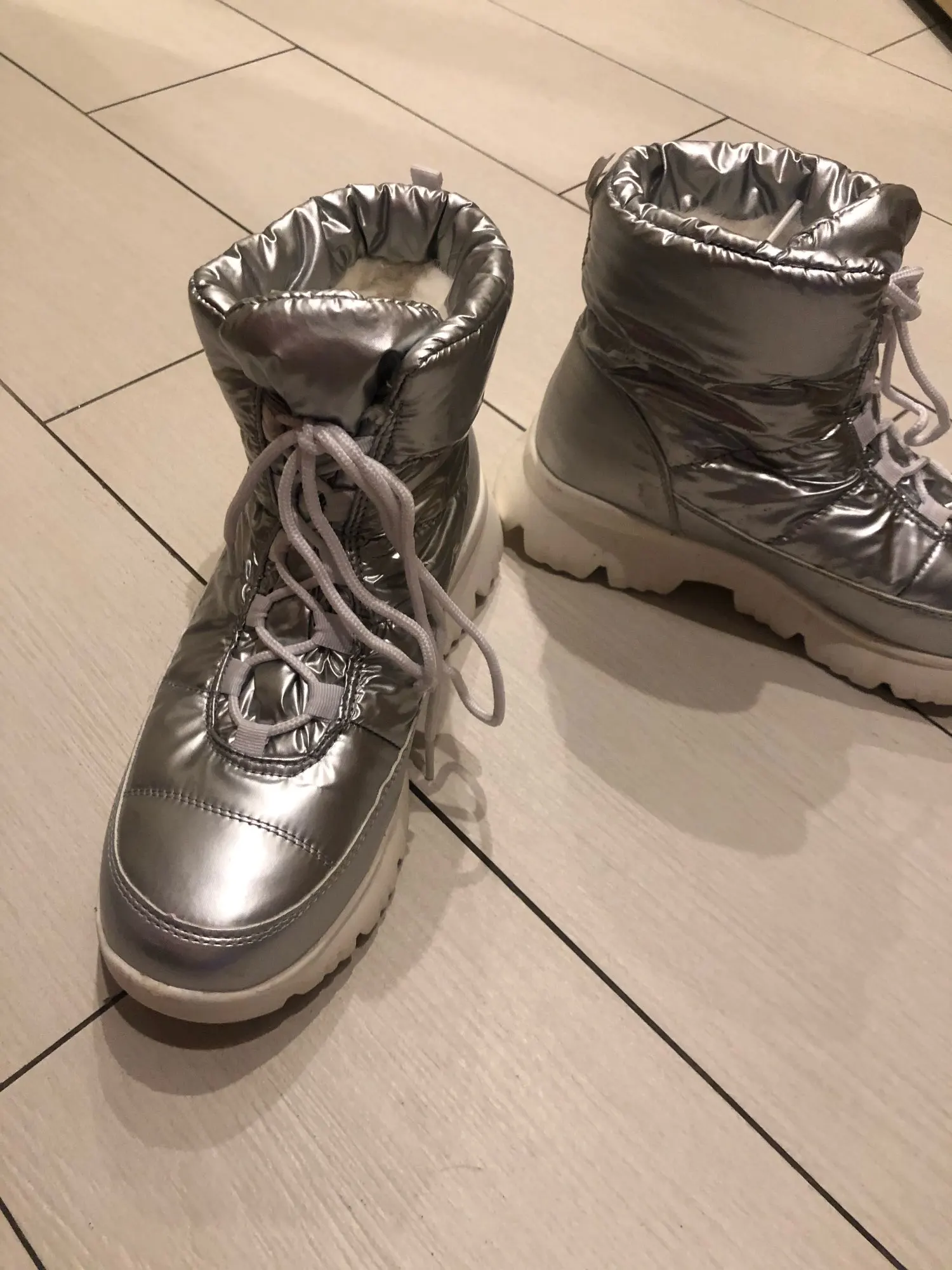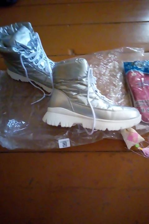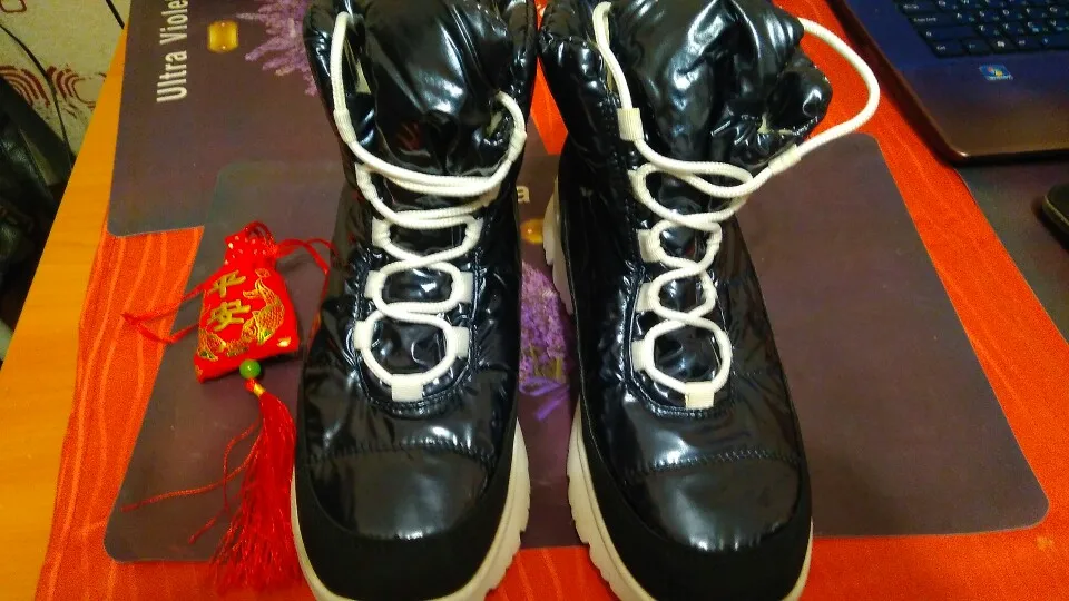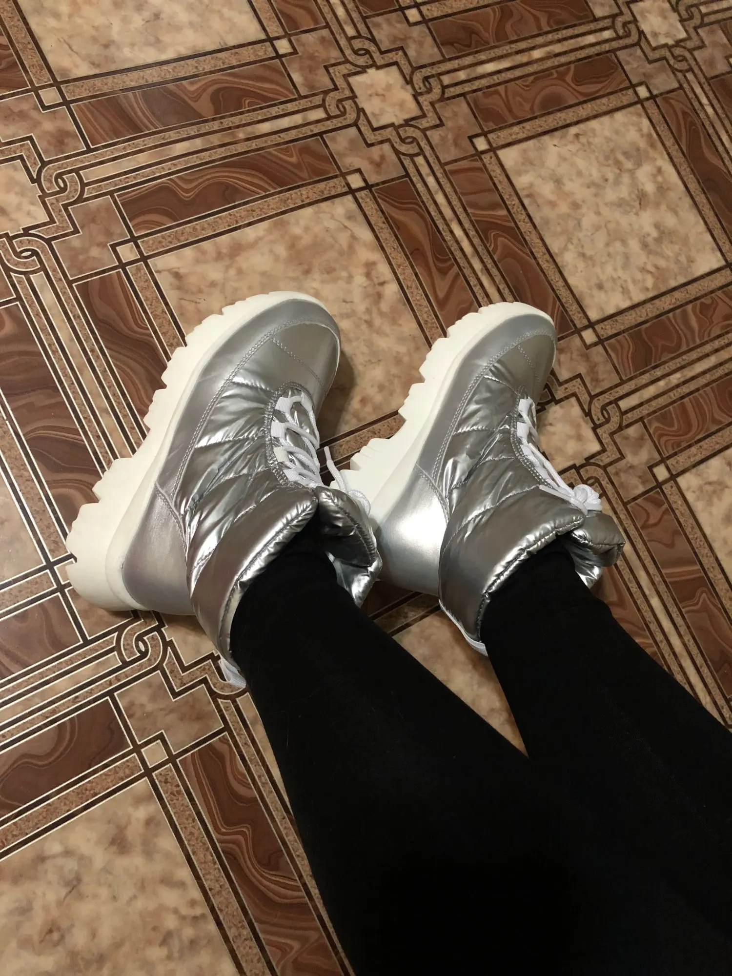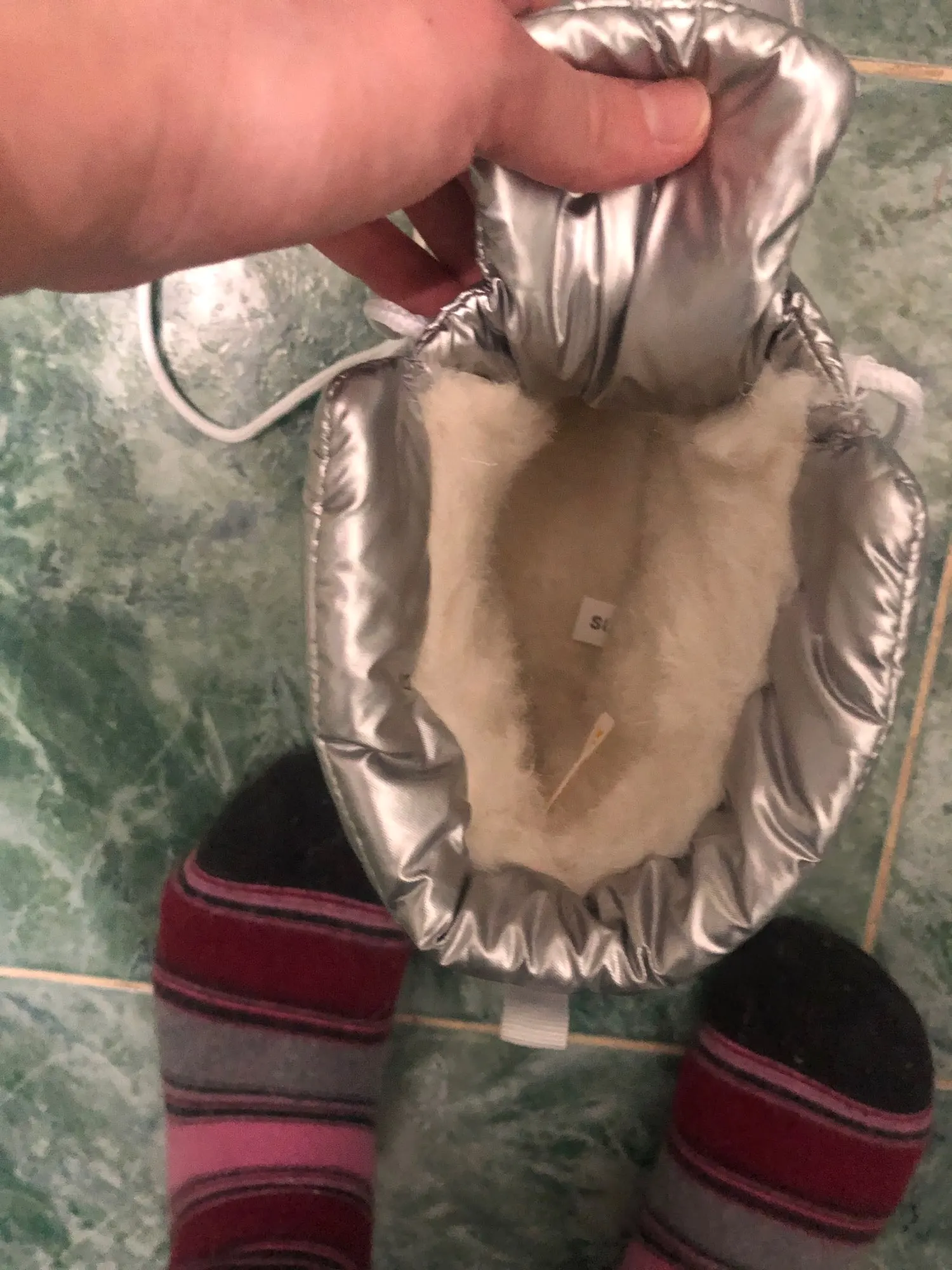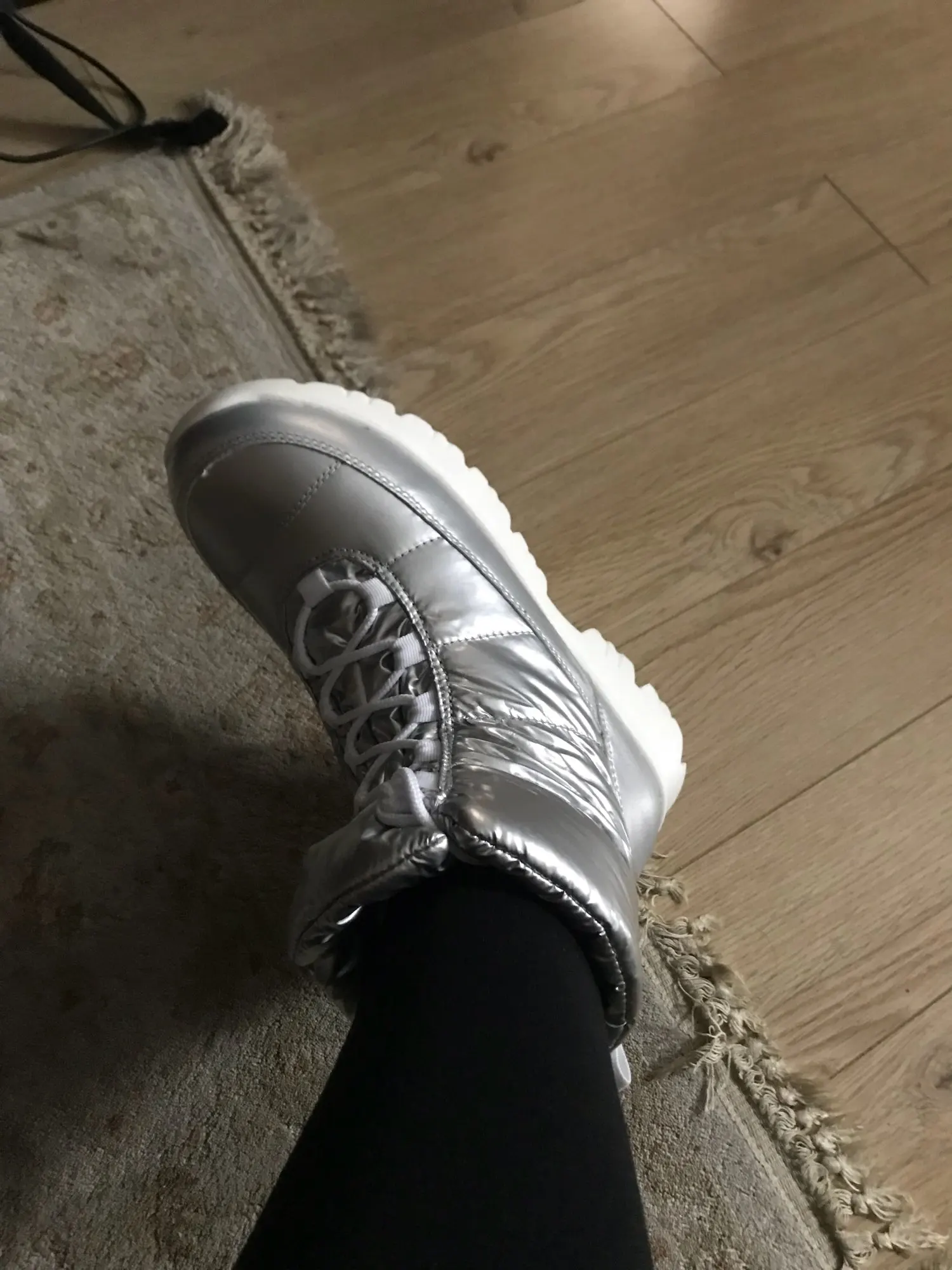 Ботинки понравились , уже опробовала при минус 10, тепло , ноги тёплые, размер подошёл отлично, моя длина стопы 25 см , российский 39 , отлично сели , не тяжёлые, стельки ещё одни положили тёплые. Единственное их материал, тот что блестит очень тонкий , как то напрягает, ощущение что потрескается быстро.