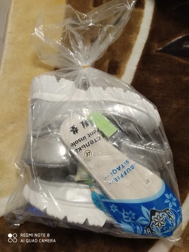 Не предполагала даже, что спонтанная покупка может быть такой классной!!! Ладно, по порядку. Пришло за 16 дней в нашу ж.. у мира, что конечно же очень быстро. Отправлен заказ продавцом тоже шустро. Упаковано на совесть - формодержатели в носке и пятке, пакет обычный, пакет пупырчатый, почтовый пакет и ещё один почтовый пакет, в общем всё аккуратно, бережно и на совесть. Сами ботинки ну просто как на мою ногу делались - легкие, удобные и идеально по размеру. 36 российский, средняя ширина ступни и средний взьем - село отлично и в длину и в ширину. Подошва легкая, упругая и похоже скользить не должна(хотя посмотрим в эксплуатации). И наверное до -20-25 их точно хватит, а ниже - зима покажет. Продавец вложил сюрприз - запасные стельки и красивый мешочек с благовониями, что очень приятно! В общем, кто раздумывает, покупать или нет, заказывайте и не сомневайтесь, вещь клёвая!!!