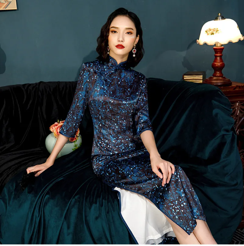 Бархатные Длинные платья Sheng Coco, вечернее Ципао, традиционная к...