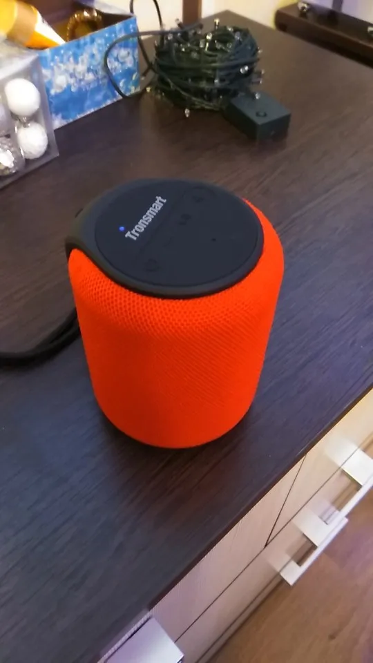 Отличная маленькая колонка, послабее обычной версии т6. Для улучшения звучания в помещении лучше ставить в угол, либо на картонную коробку для усиления резонанса. 5 звёзд из 5. Доставили через ups прямо в руки.