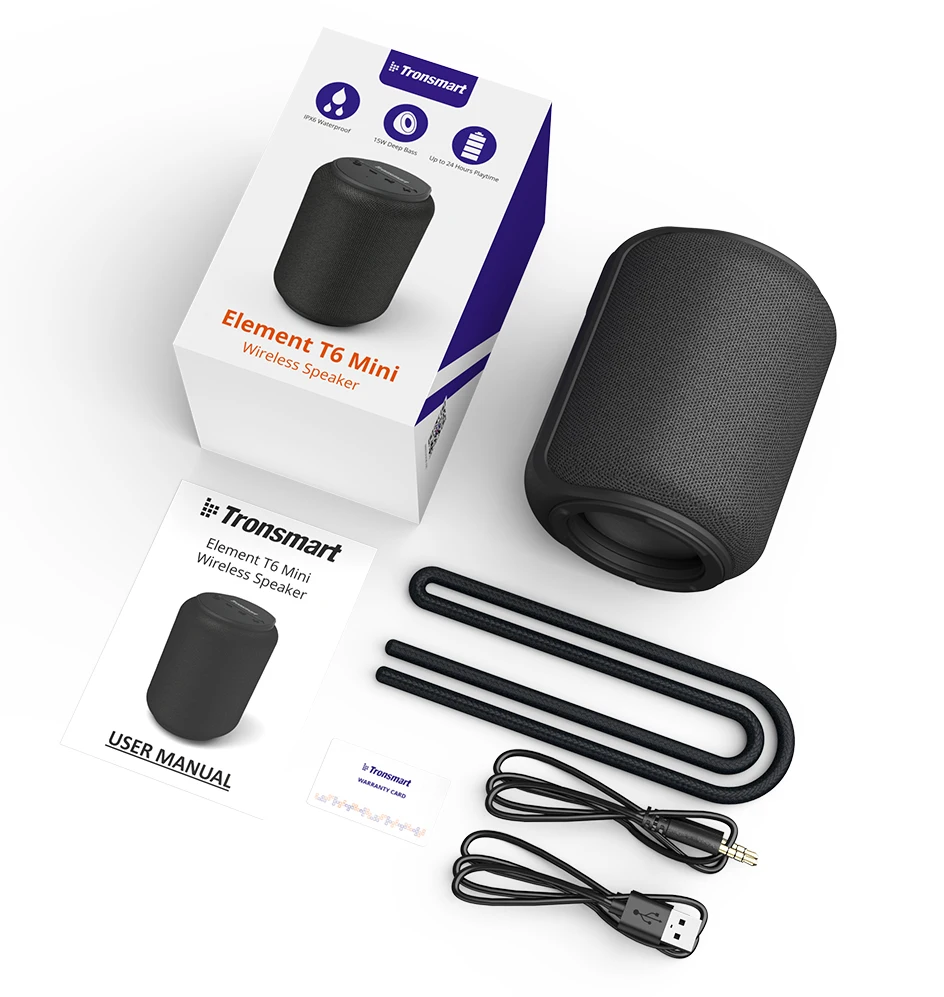 Tronsmart T6 мини-динамик, беспроводной bluetooth-динамик с объемным звуком 360 градусов, 24H время воспроизведения, IPX6 Водонепроницаемый