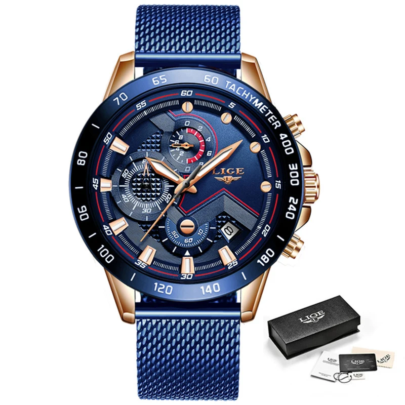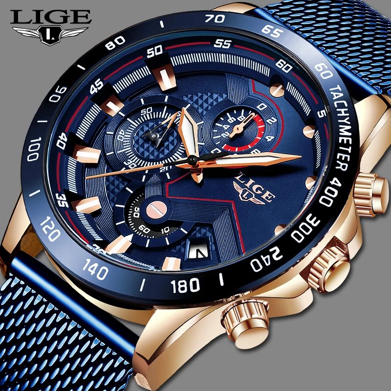 LIGE модные новые мужские часы брендовые Роскошные наручные кварцевые часы синие часы мужские водонепроницаемые спортивные хронограф Relogio Masculino