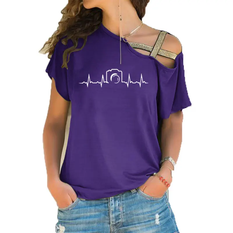 Женская футболка с короткими рукавами в виде сердца из Камера t рубашки для мальчиков новая летняя футболка с короткими рукавами, хлопковое модное фотограф Нерегулярные Косой крест