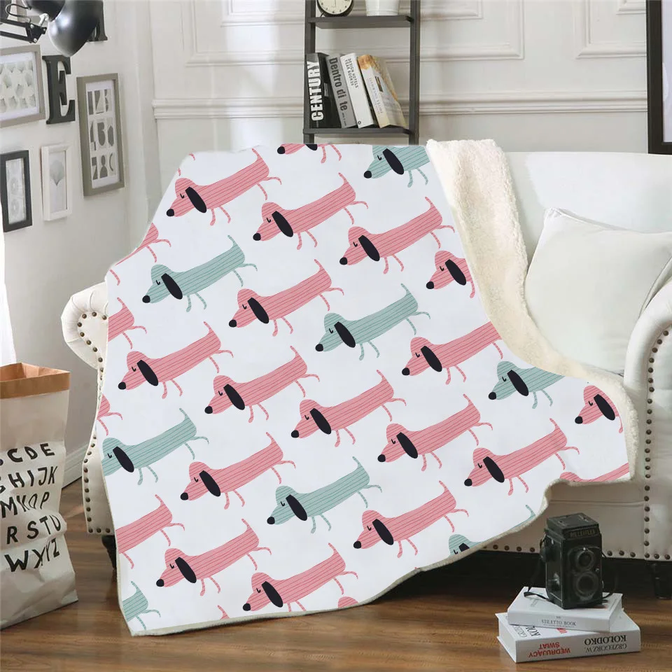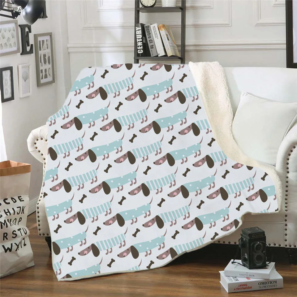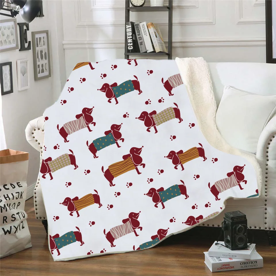 Флисовое одеяло с 3D-принтом в виде таксы, для кровати, плотное оде...