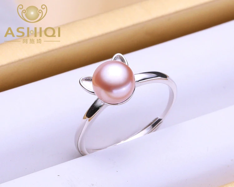 Женское серебряное кольцо ASHIQI, ювелирное изделие из натурального пресноводного жемчуга с натуральным 925 пробы, 2019