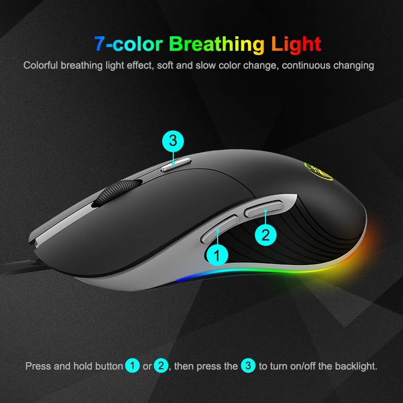 Мышь Компьютерная Проводная игровая, 6400 DPI, USB, с RGB-подсветкой