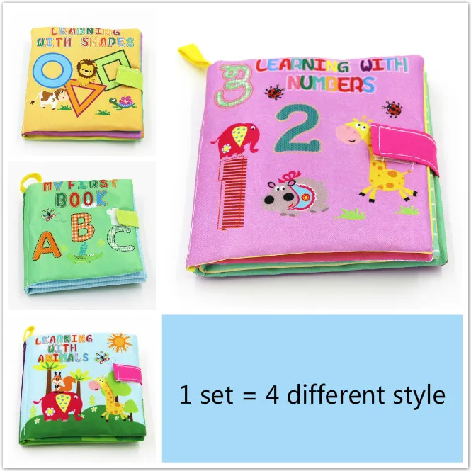 1 комплект = 4 разных стиля, детские игрушки от 0 до 36 месяцев, книжки из мягкой ткани, образовательная игрушка для новорожденных, кроватка для младенцев