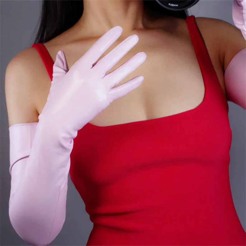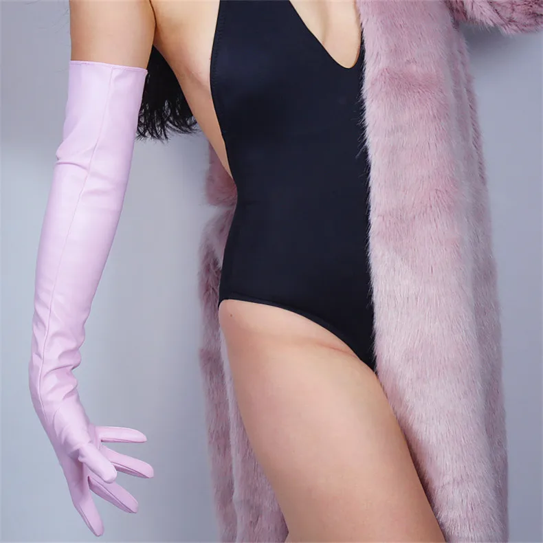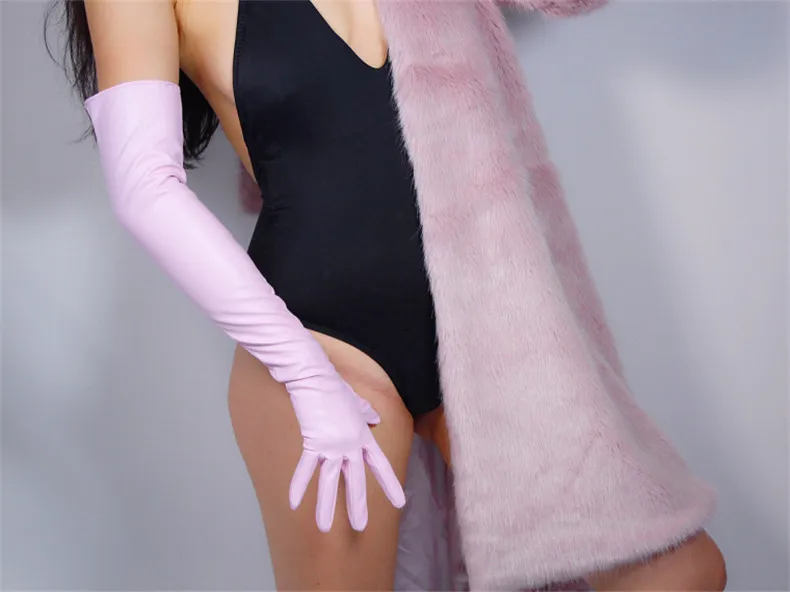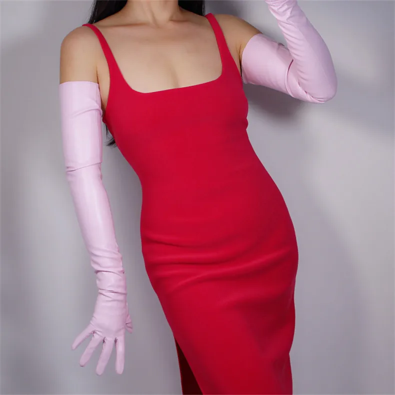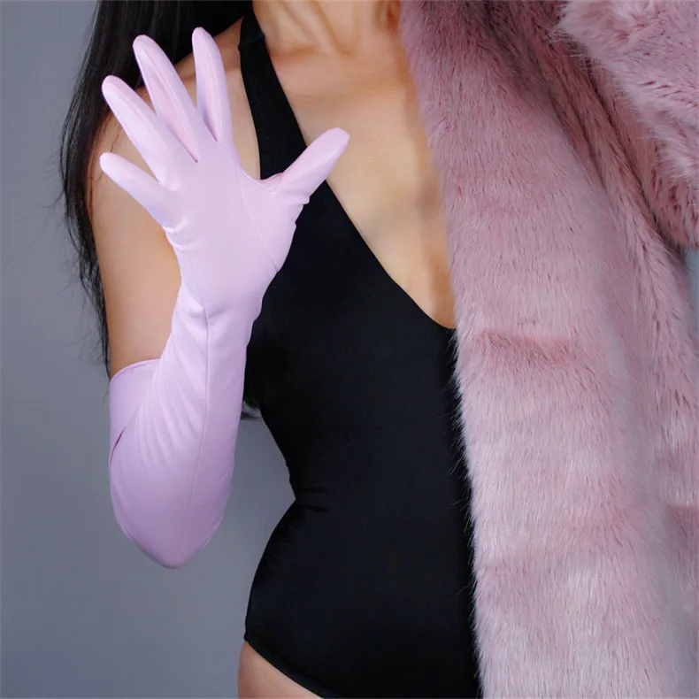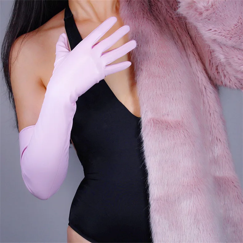 Удлиненные кожаные перчатки 70 см, длинная секция, искусственная кожа, овчина, цвет вишни светильник-розовые теплые перчатки из искусственной кожи, женские WPU70