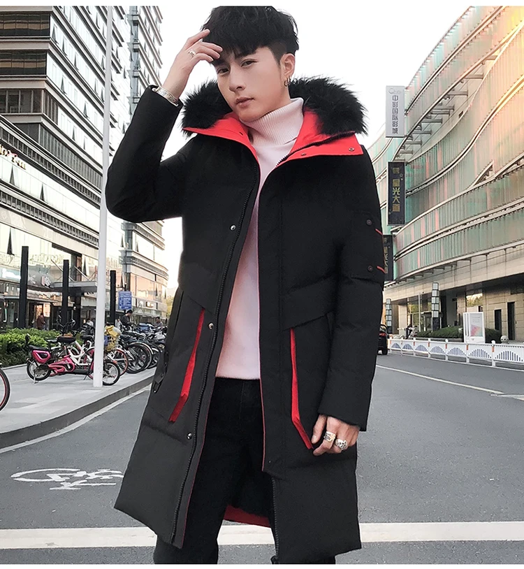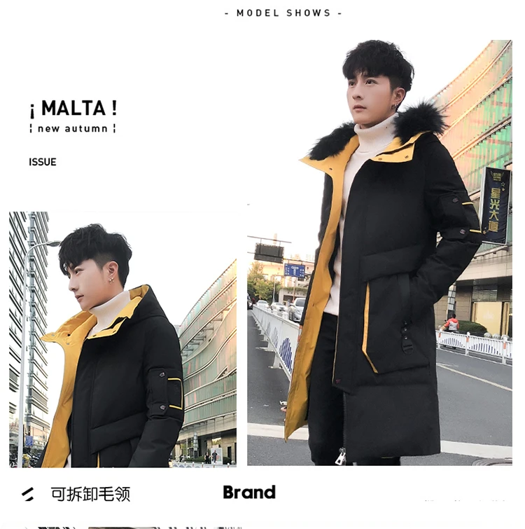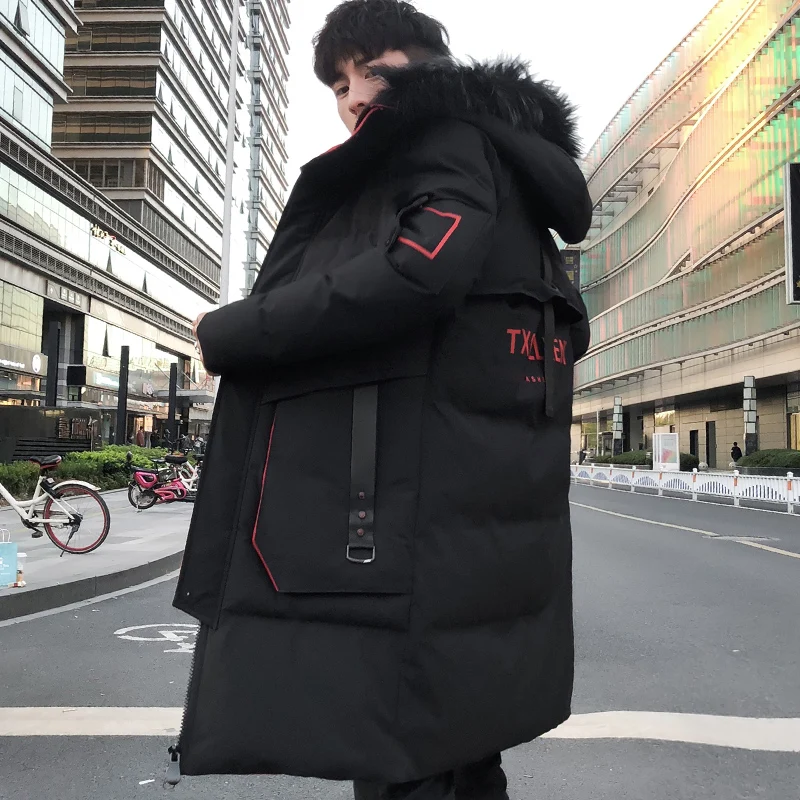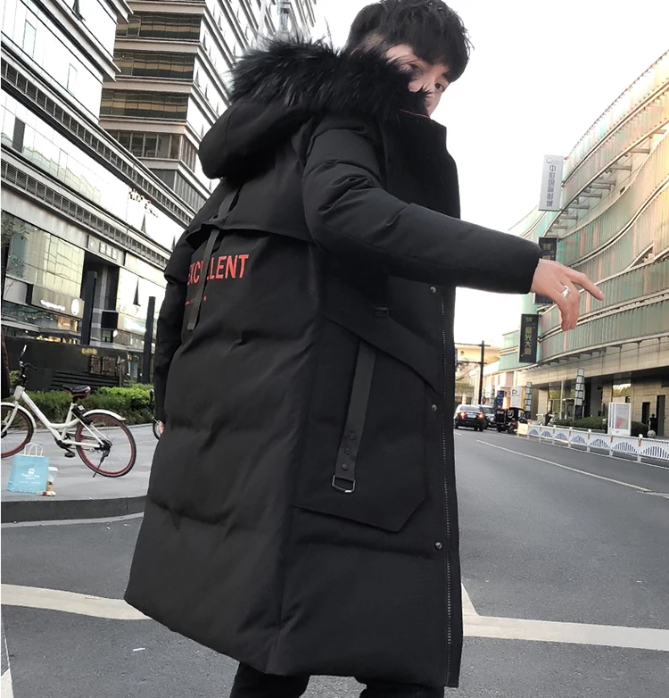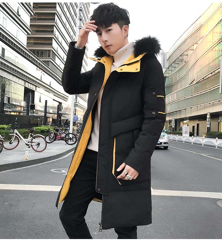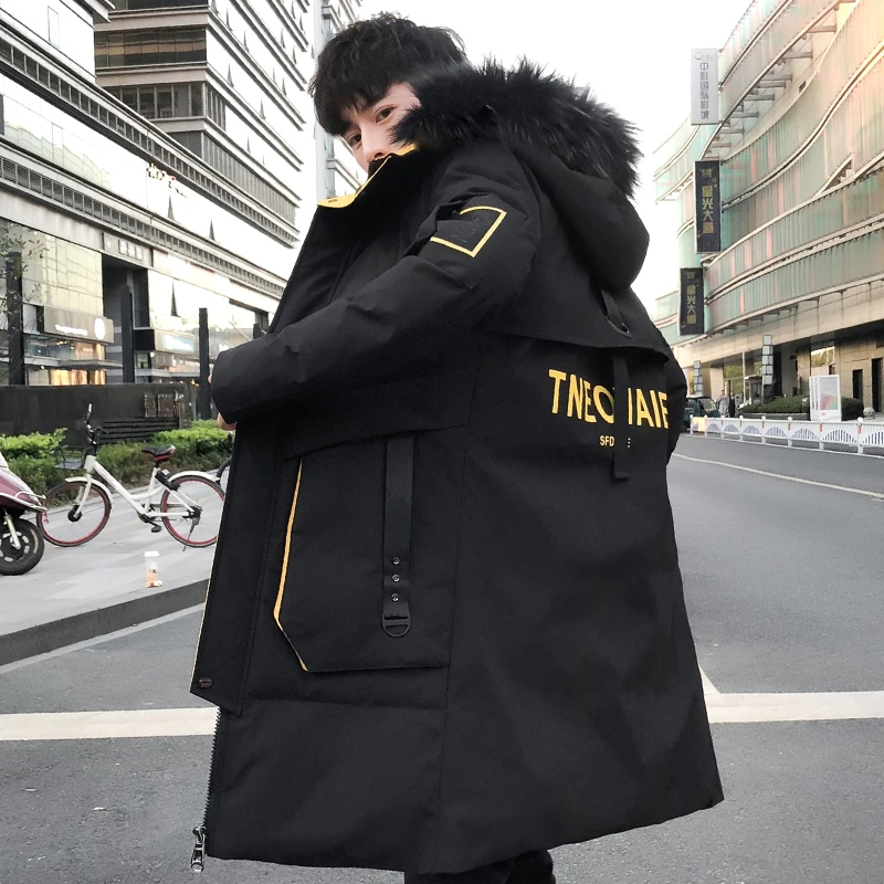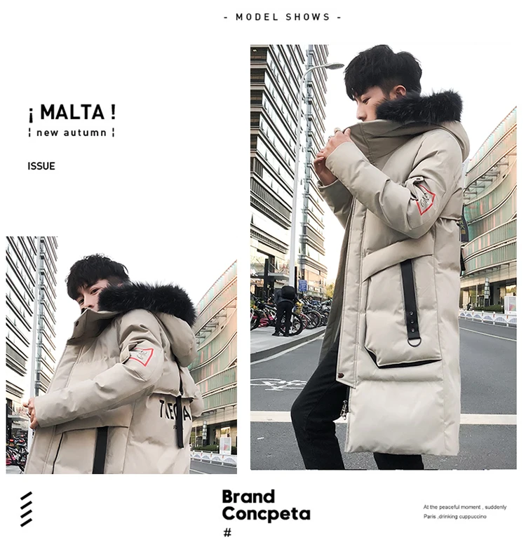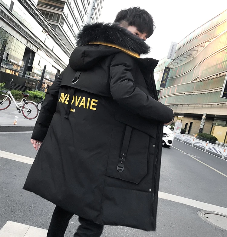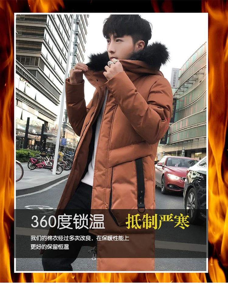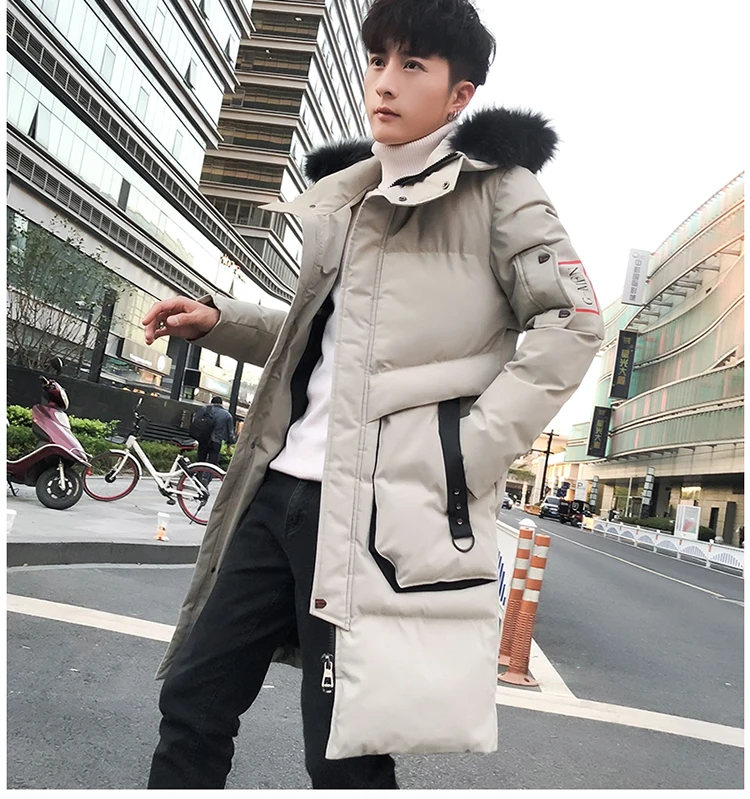 Мужская зимняя куртка из хлопка, новая Толстая трендовая мужская длинная Повседневная однотонная хлопковая куртка с капюшоном, мужской пуховик