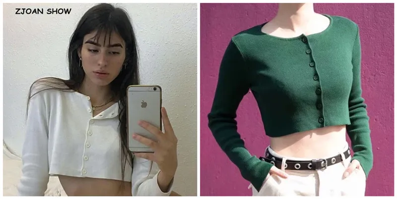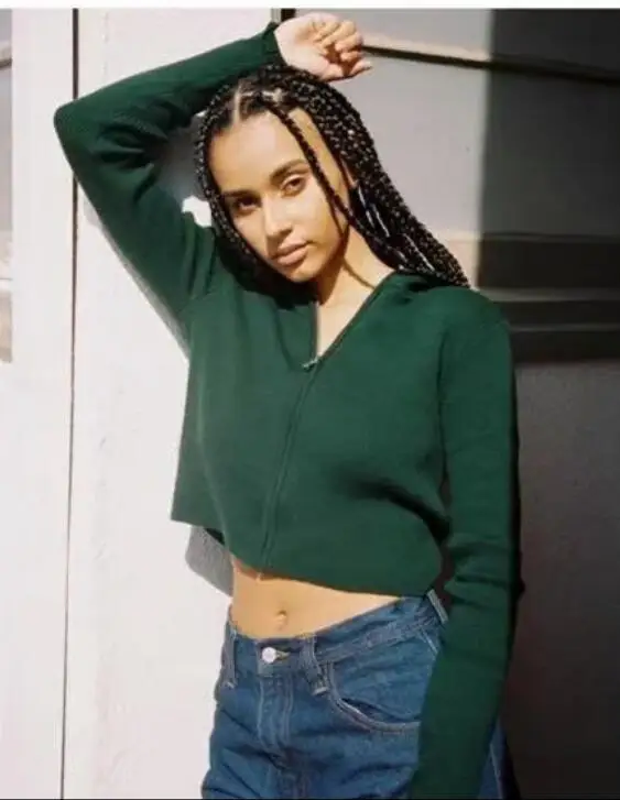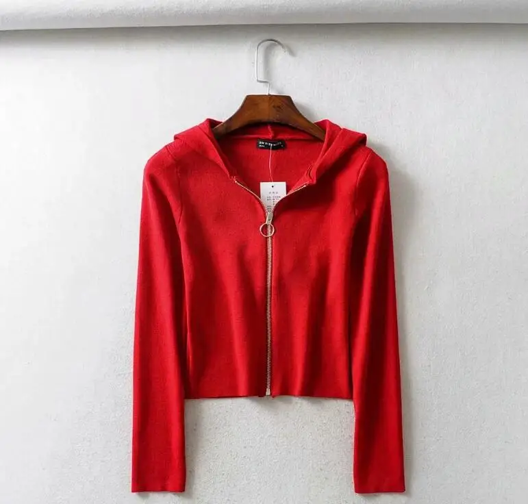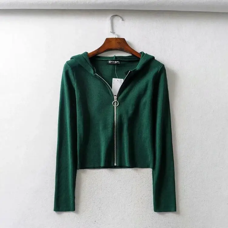 Женский укороченный кардиган на молнии с капюшоном, винтажный трикотажный свитер с открытым пупком, короткая трикотажная одежда, джемпер с длинным рукавом, топы