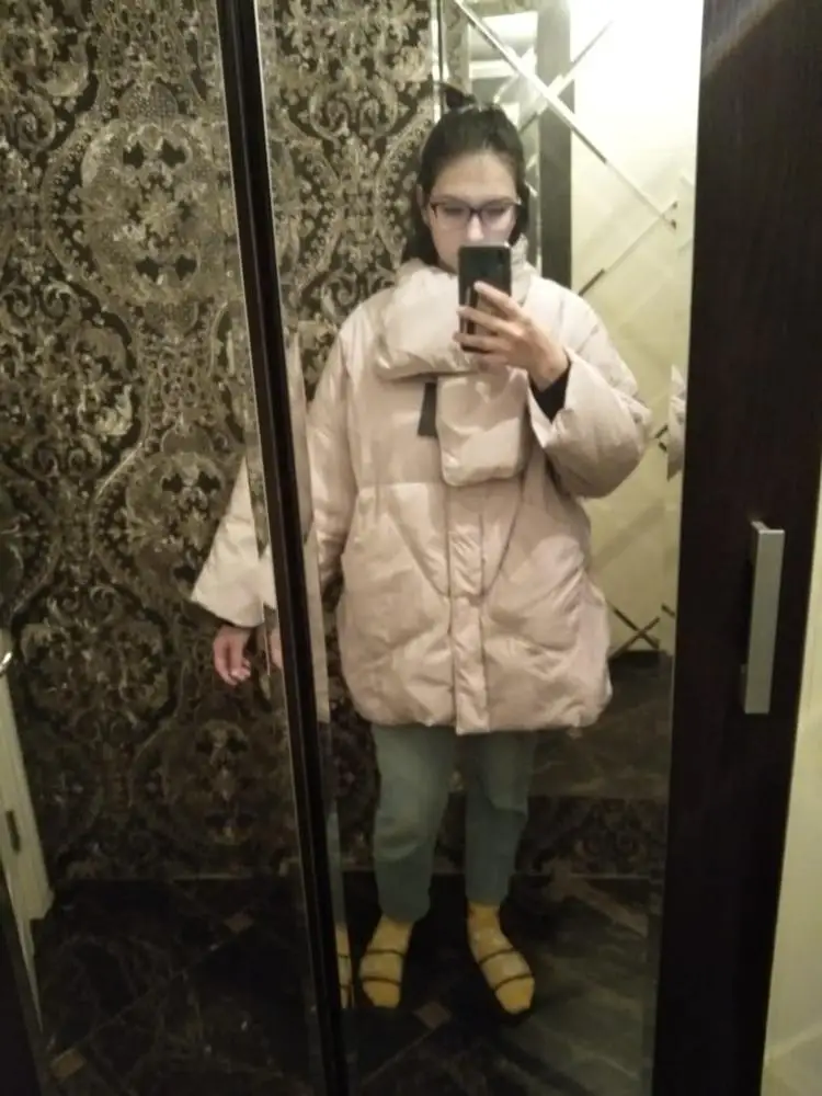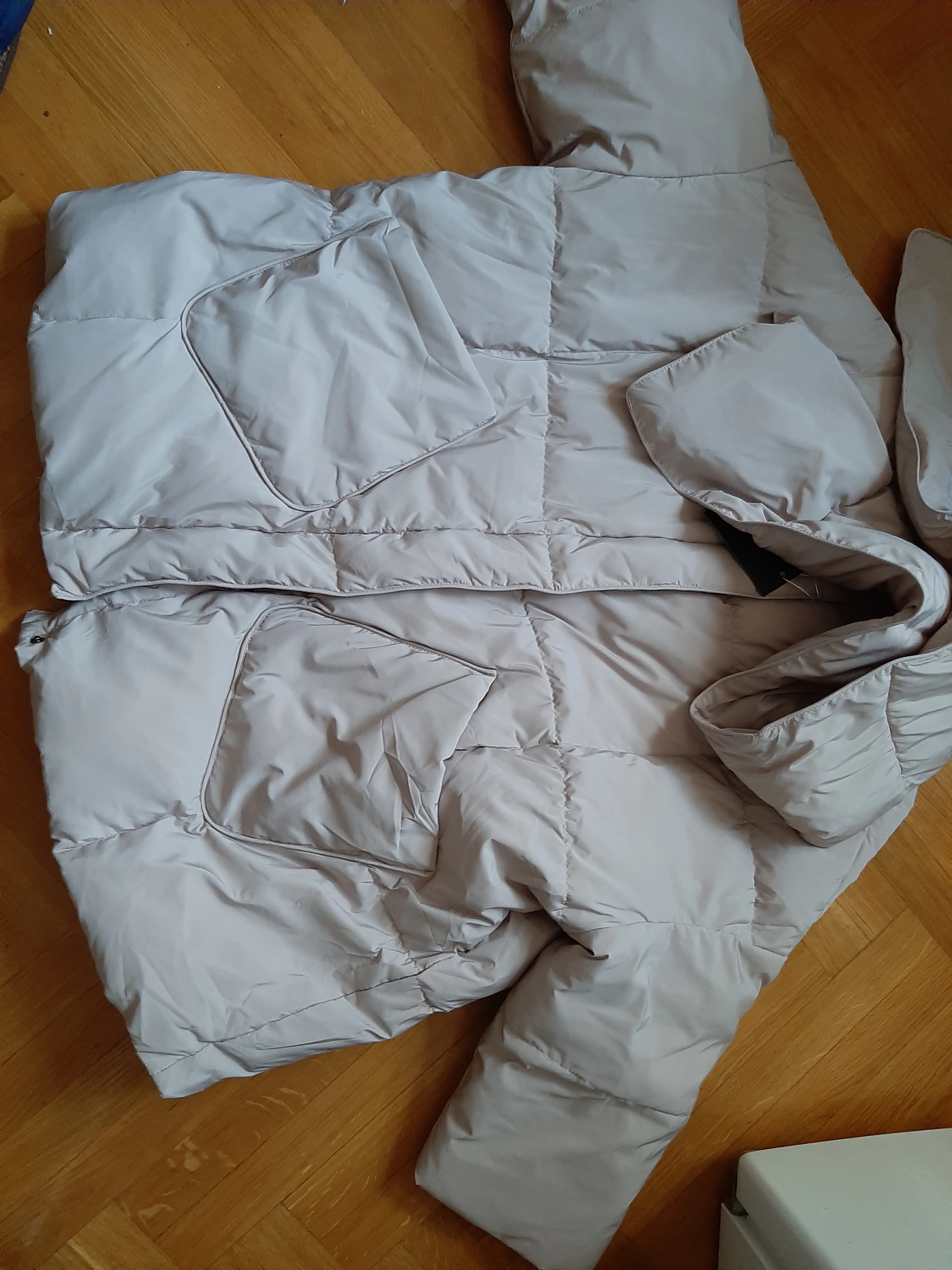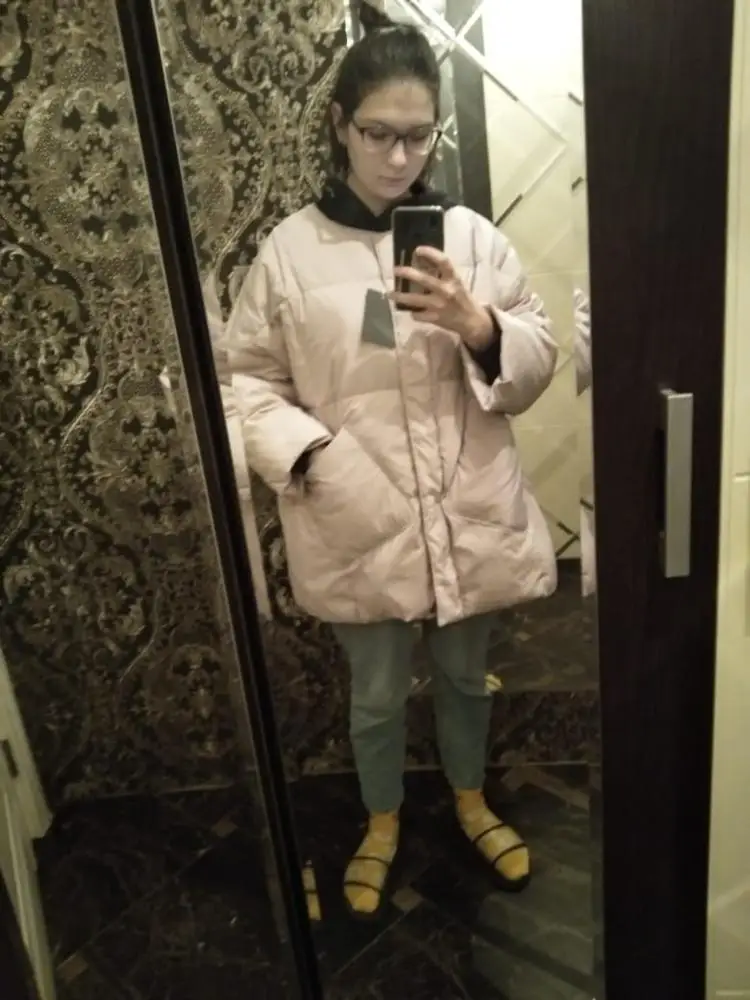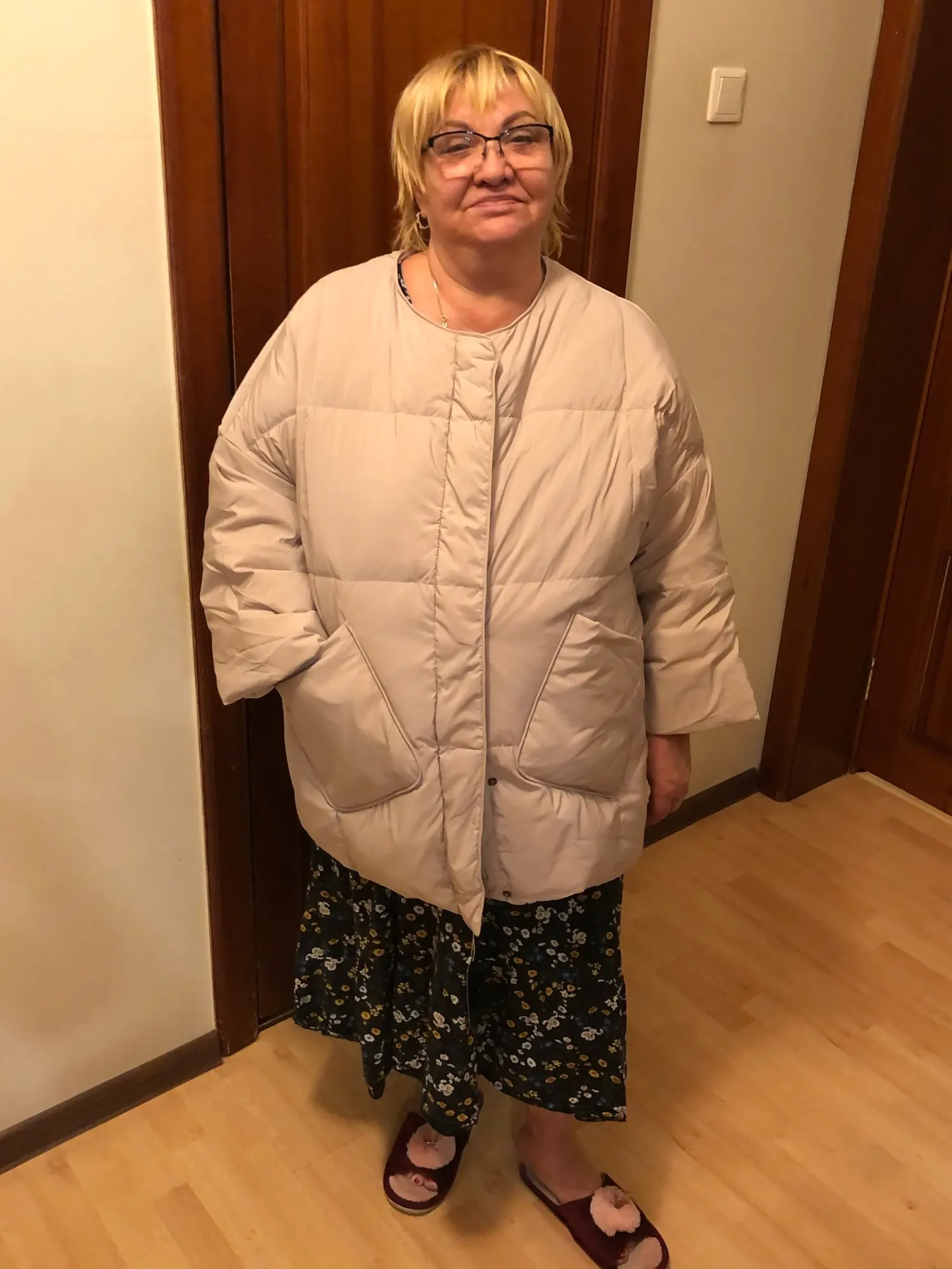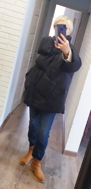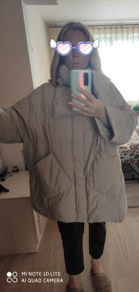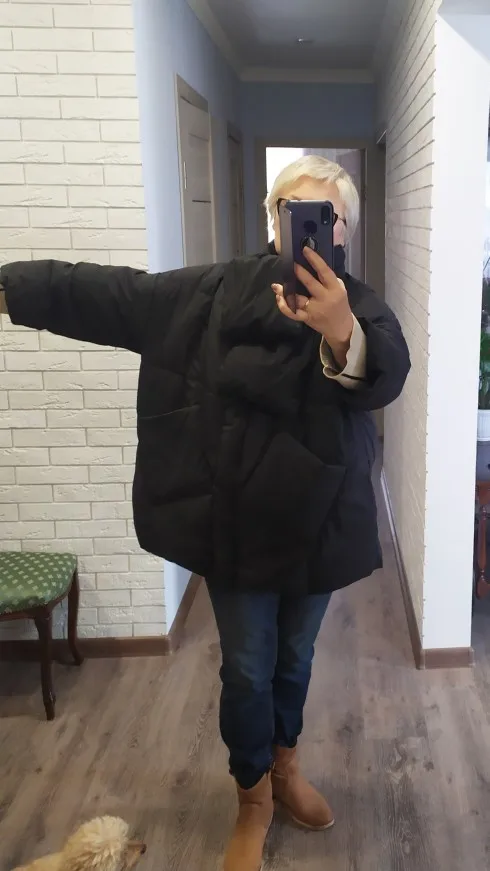 Очень довольна пуховичком. Пришлось неиного подождать. Заказала 11.11 получила 14.12. Качество пошива, ткань на высоте, но он до -5 градусов, не более. Фасон оверсайс, даже на мой 48 российский размер очень объемный, но в этом вся фишка. Такую одежду надо уметь носить!