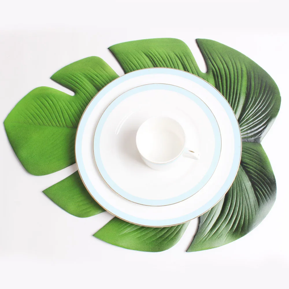 Салфетка под тарелку с лиственным рисунком с ладонью, искусственные зеленые горшечные растения, нескользящая столовая посуда, коврики для домашнего Западного декора
