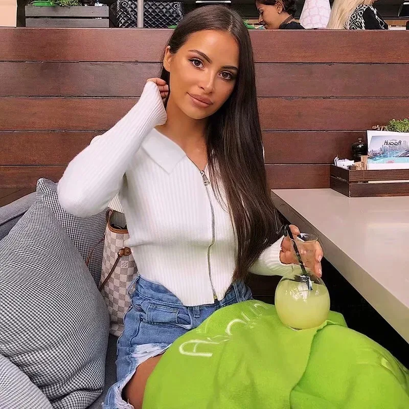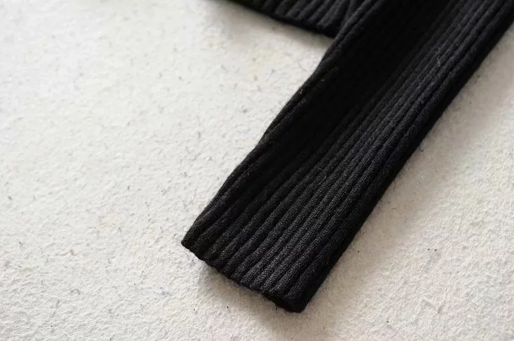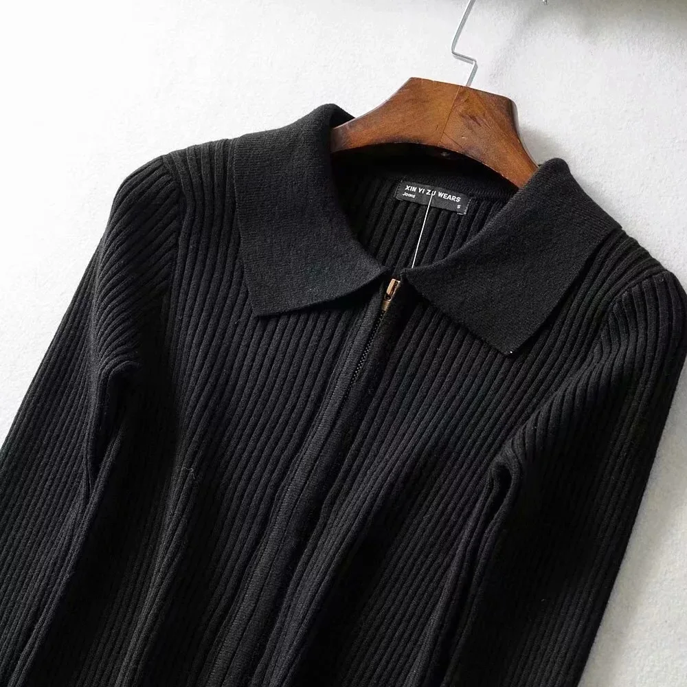 Женский весенне-осенний черный свитер в рубчик на молнии, короткий ...