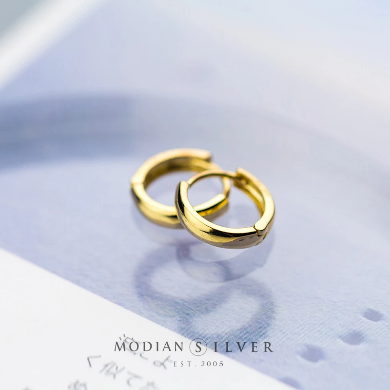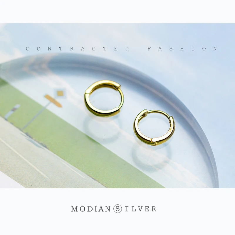 Modian Круглый Простой золотистый браслеты с подвесками женские серьги-кольца сверкающие 925 стерлингового серебра ювелирные изделия для женщин Свадебные серьги для официальных мероприятий