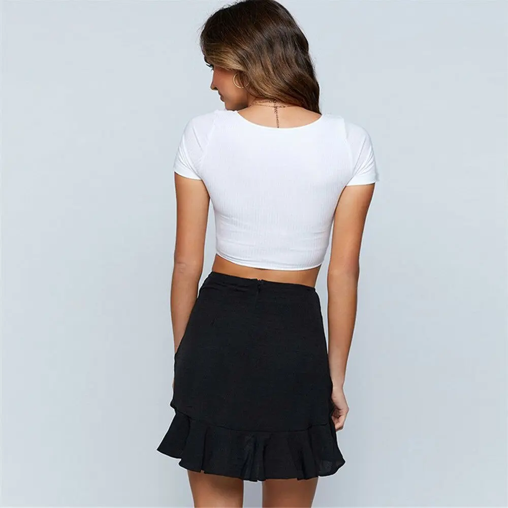 Женские укороченные топы с коротким рукавом, сексуальная простая эл...