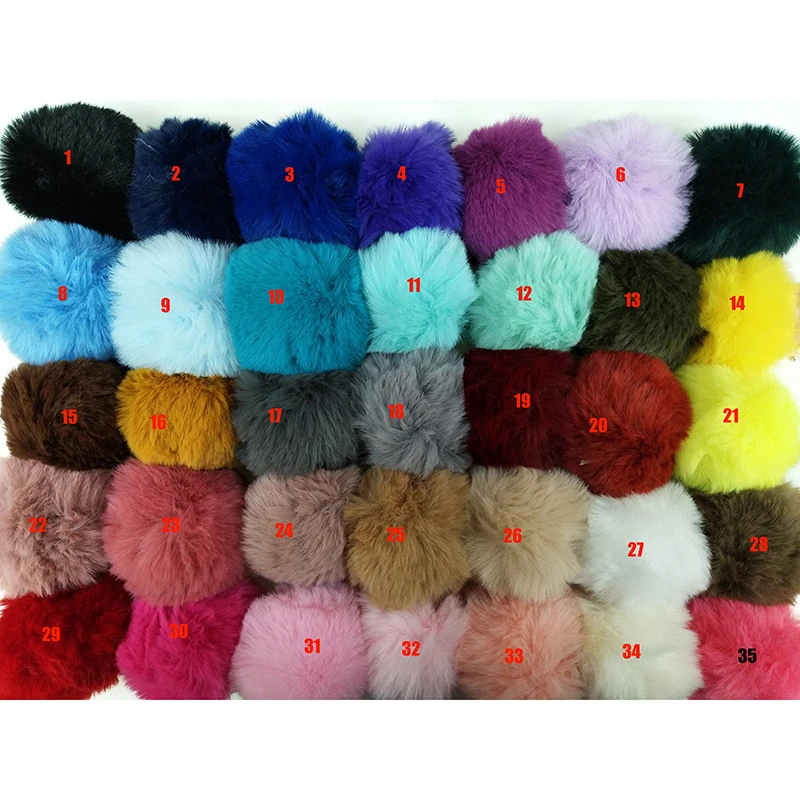 Шарик из искусственного кроличьего меха с помпоном, 35 цветов, сделай сам, шарик 8 см с маленьким эластичным шнурком для шляп, обуви, сумок, шарфов, перчаток, аксессуары