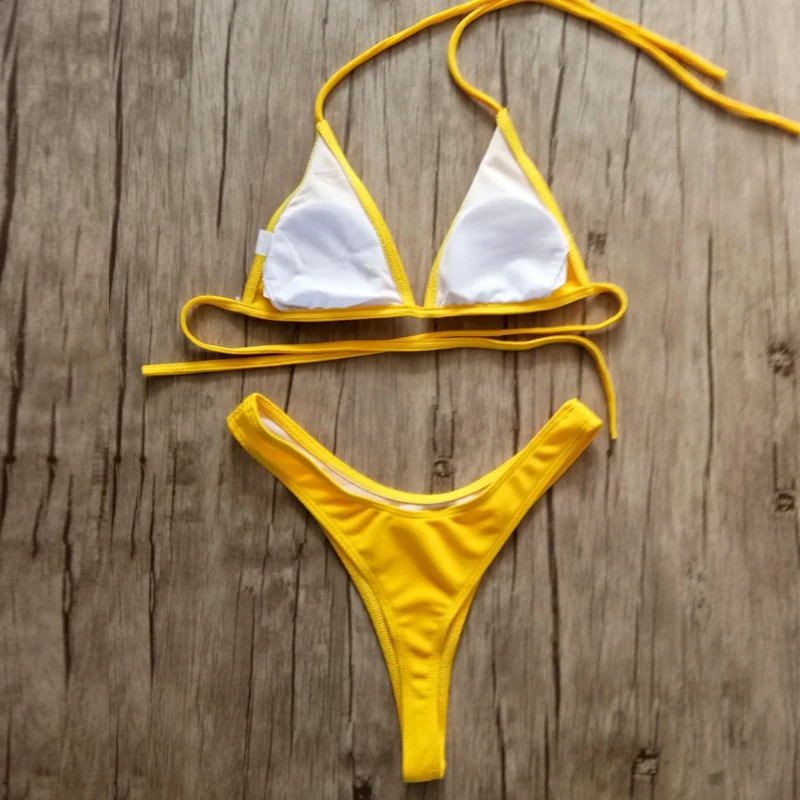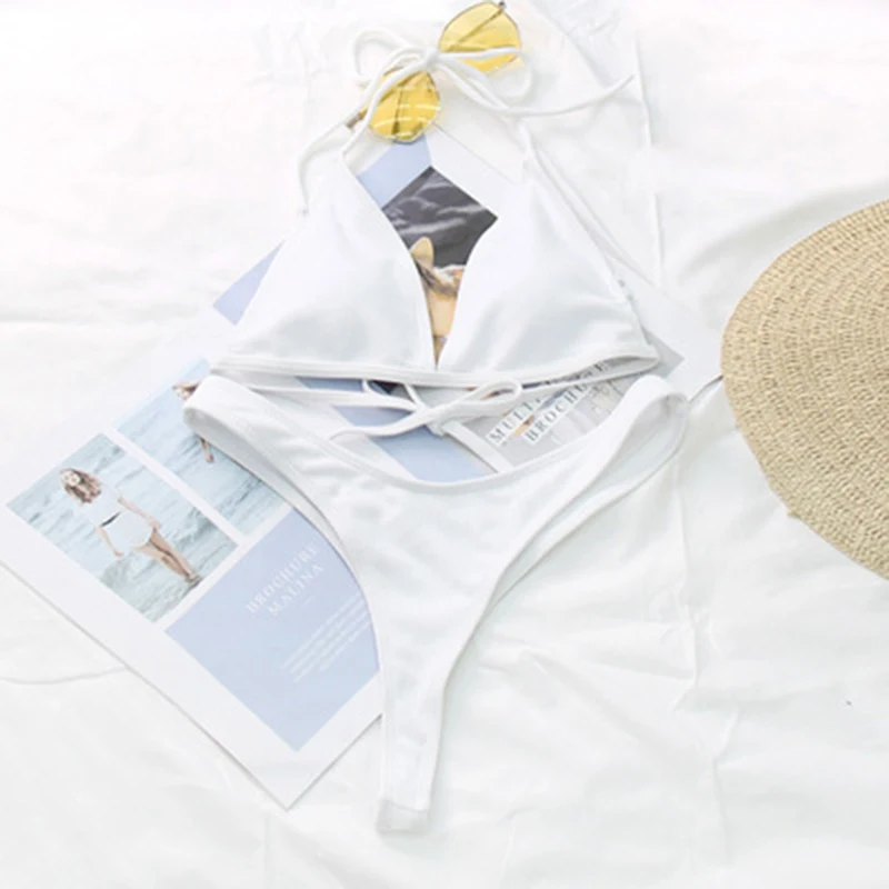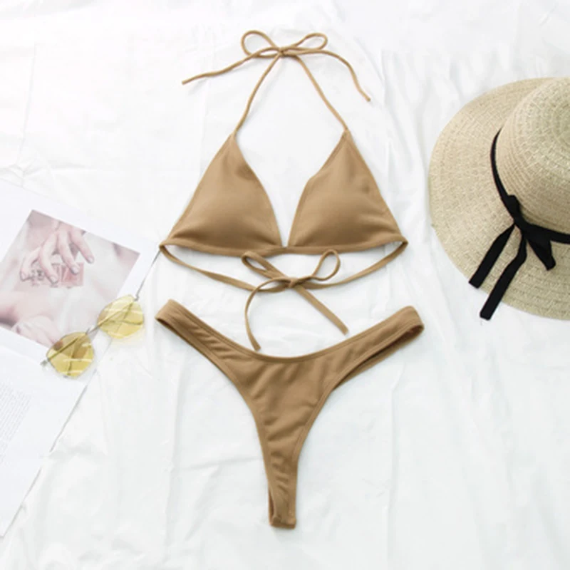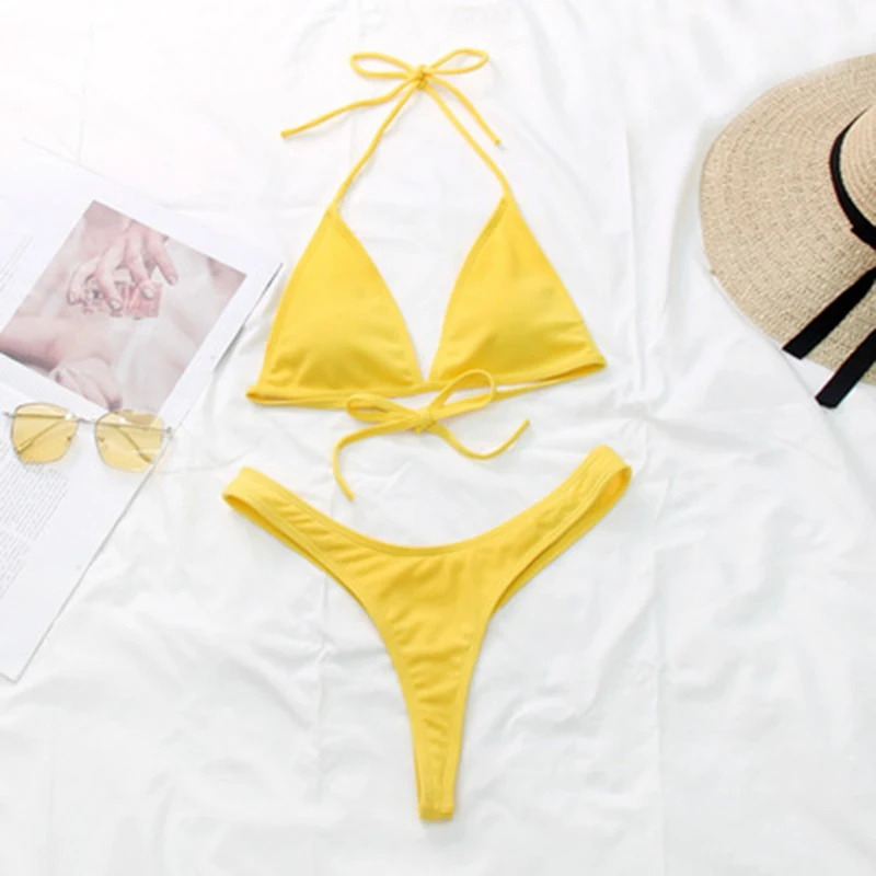 Купальник-бикини Bandeau Tanga в рубчик, пикантный комплект бикини с высоким вырезом, бразильский купальник, стринги, купальная одежда для женщин и девушек, 2021