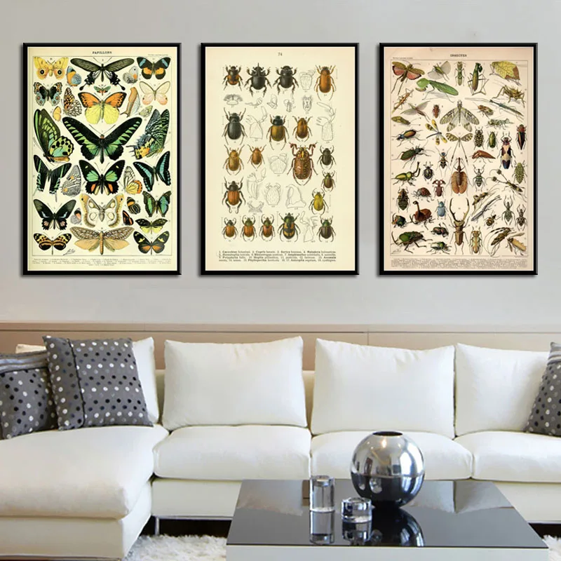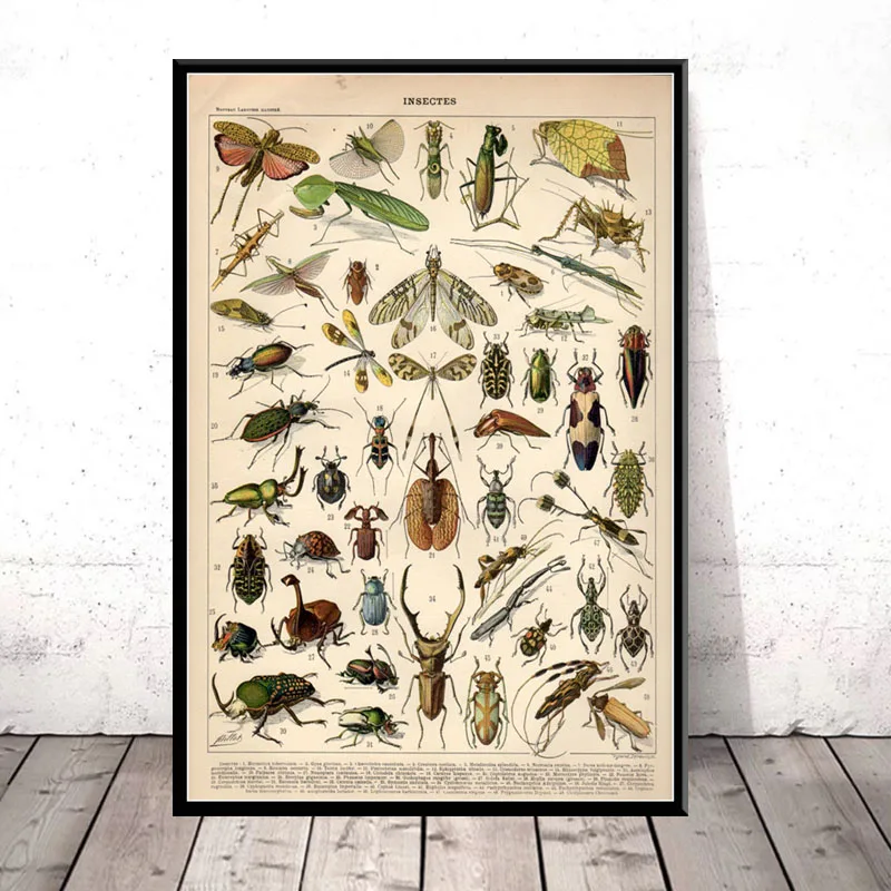 Картина на холсте в винтажном стиле, плакат с образцами насекомых, Картина на холсте высокого качества, украшение для дома, без рамки, o416
