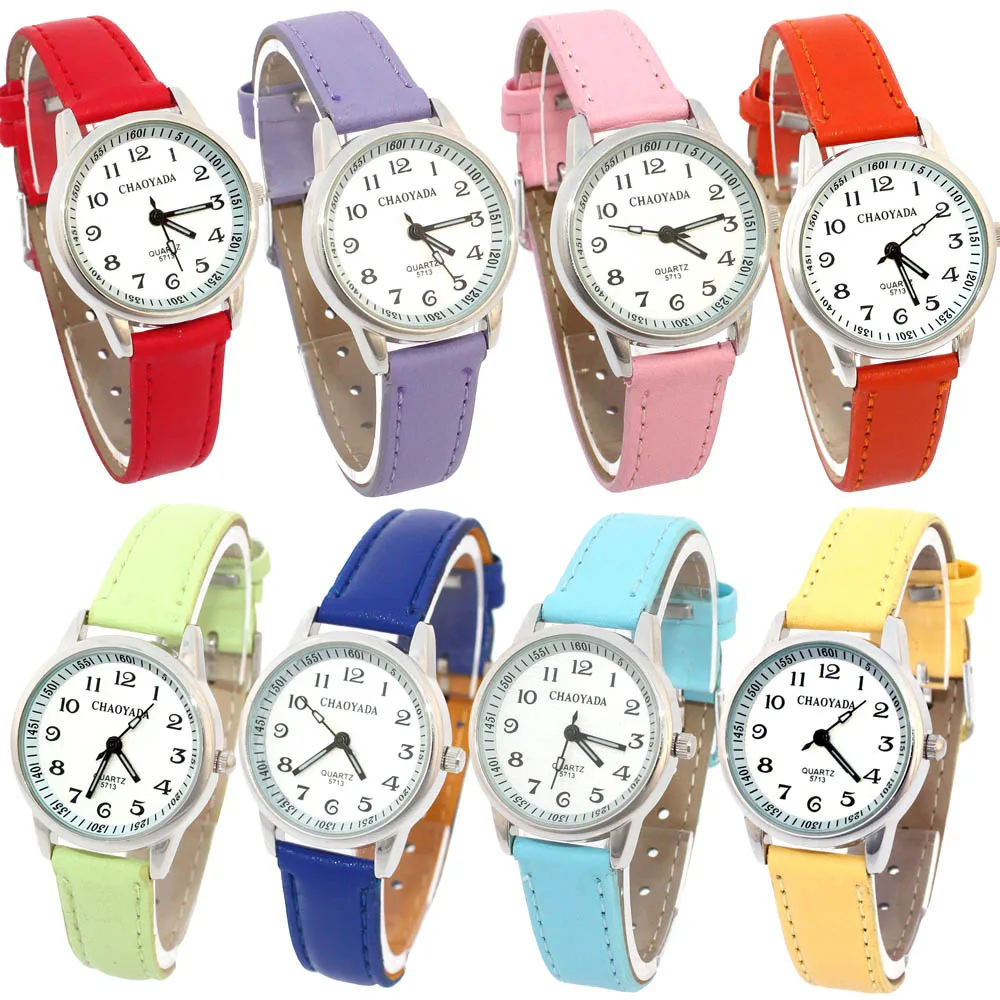 Часы детские часы Chaoyada с кожаным ремешком, детские часы с учени...