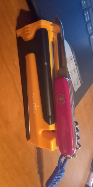 1. Поместите точилку на ровную поверхность и прочно Держите точилку рукой, сохраняя пальцы за защитой пальцев.