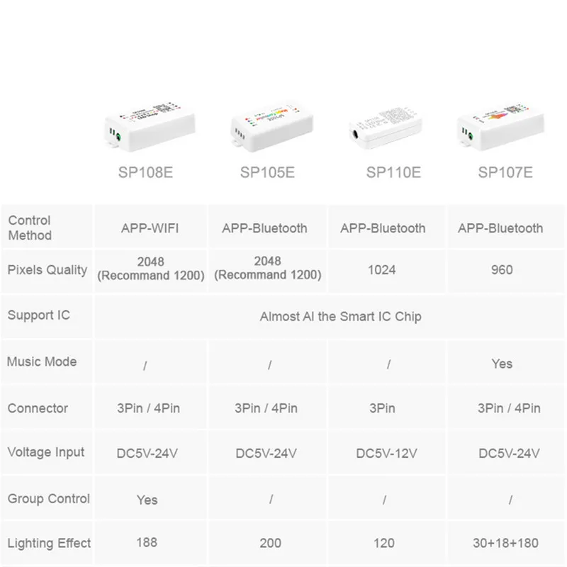 Светодиодный Wi-Fi Bluetooth музыкальный контроллер SP105E SP106E SP107E SP108E SP511E SP110E, адресный полноцветный пиксельный RGB-контроллер