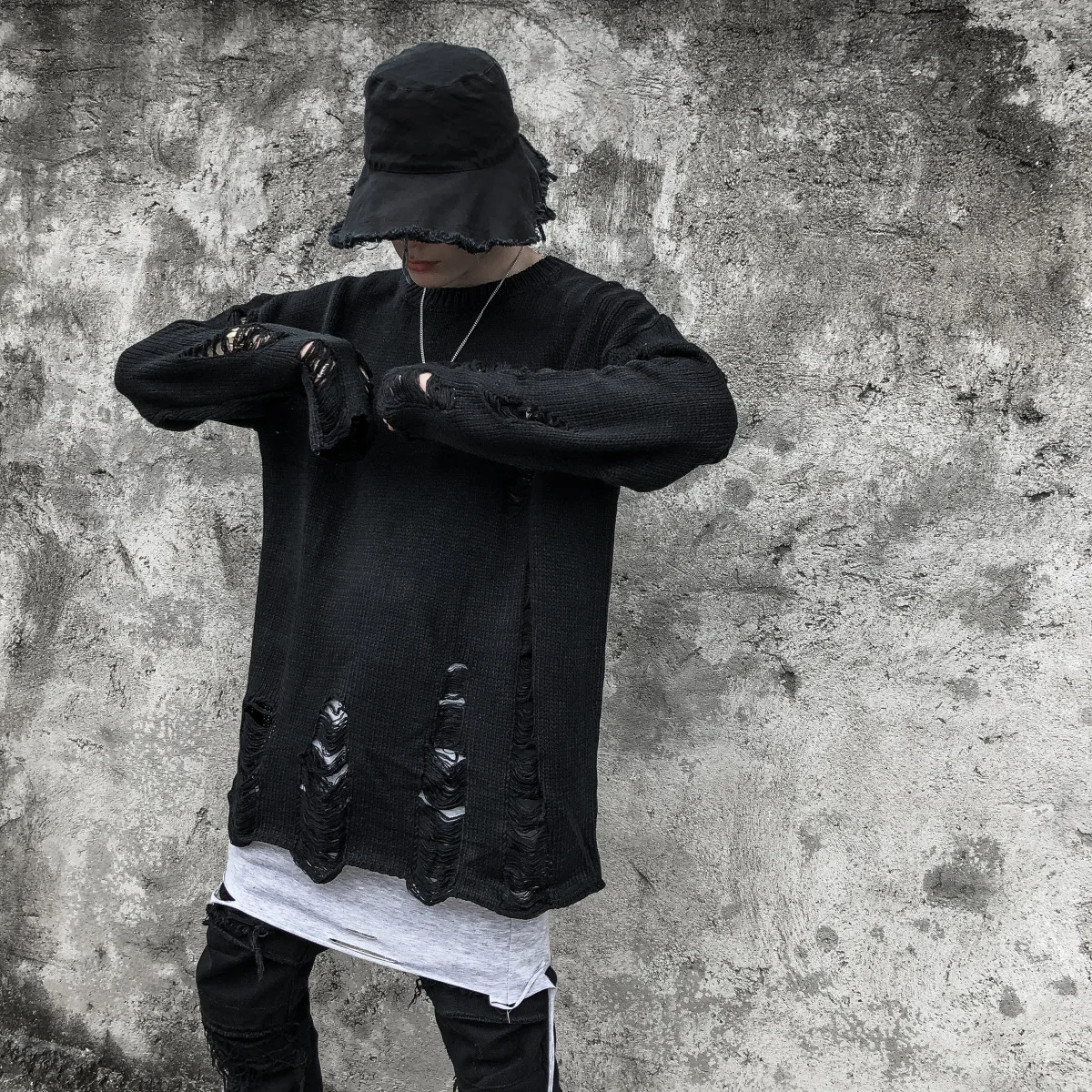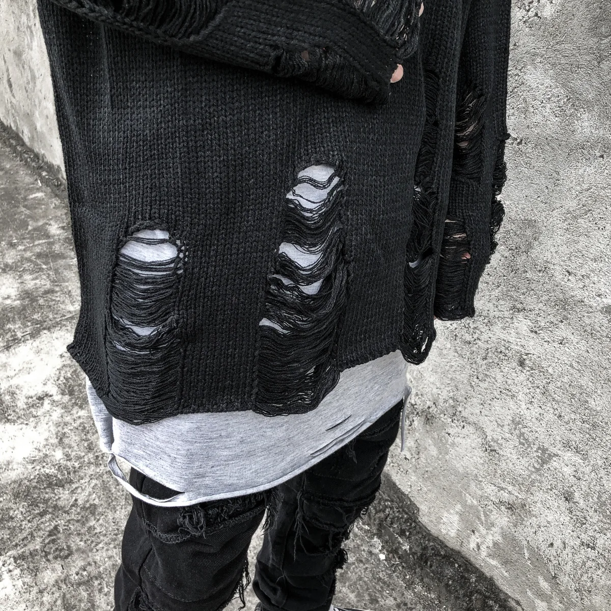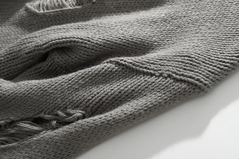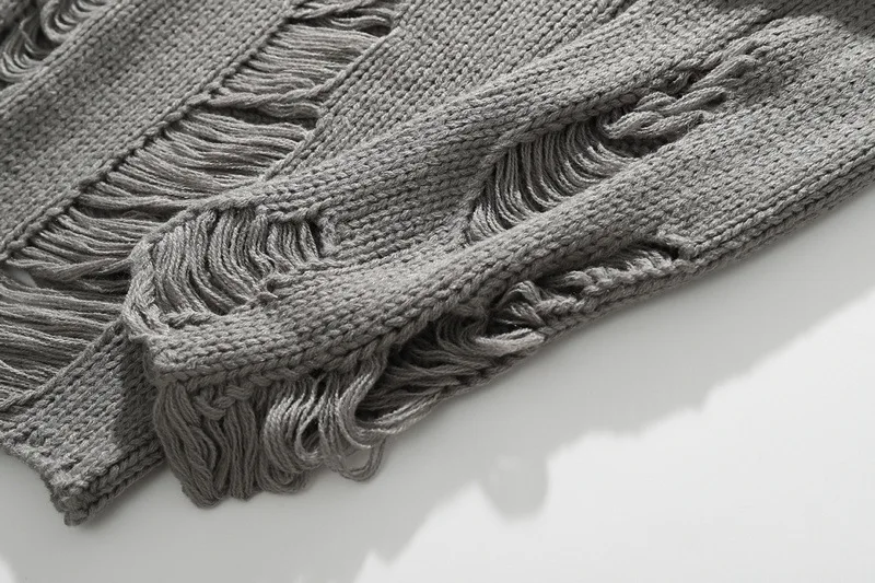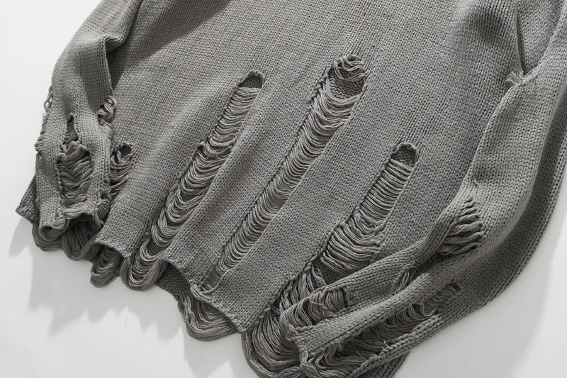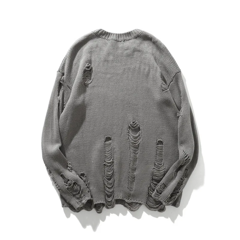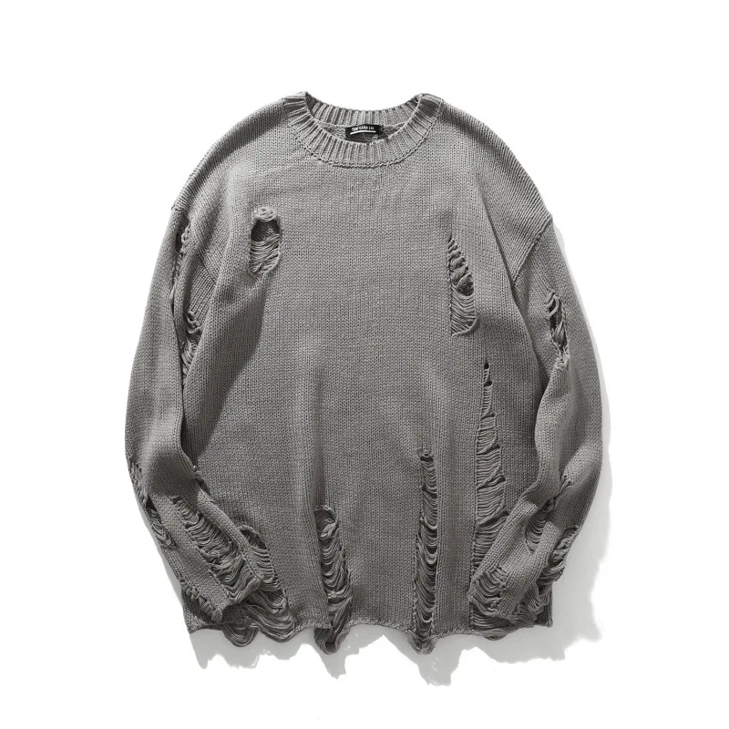 Вязаный свитер для мужчин и женщин в стиле хип-хоп с рваными отверстиями, винтажный свитер в стиле Харадзюку, пуловер оверсайз, черный, серый
