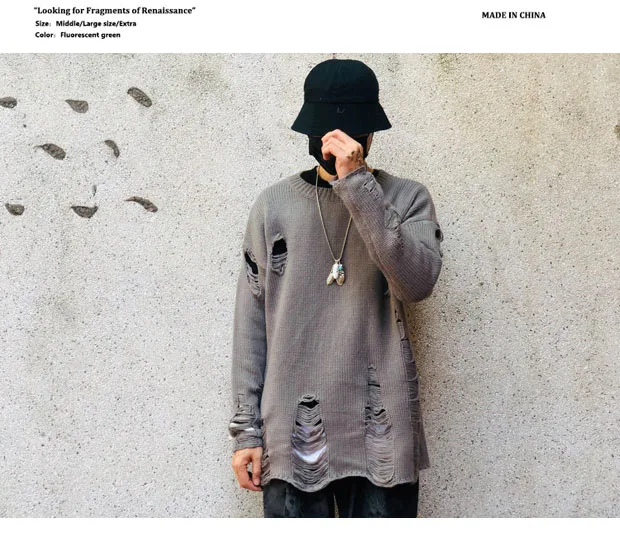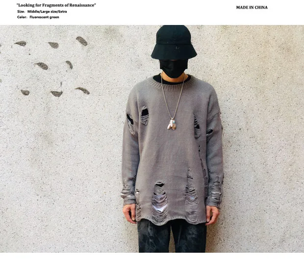 Рваные вязаные свитера с дырками для мужчин и женщин, уличная одежд...