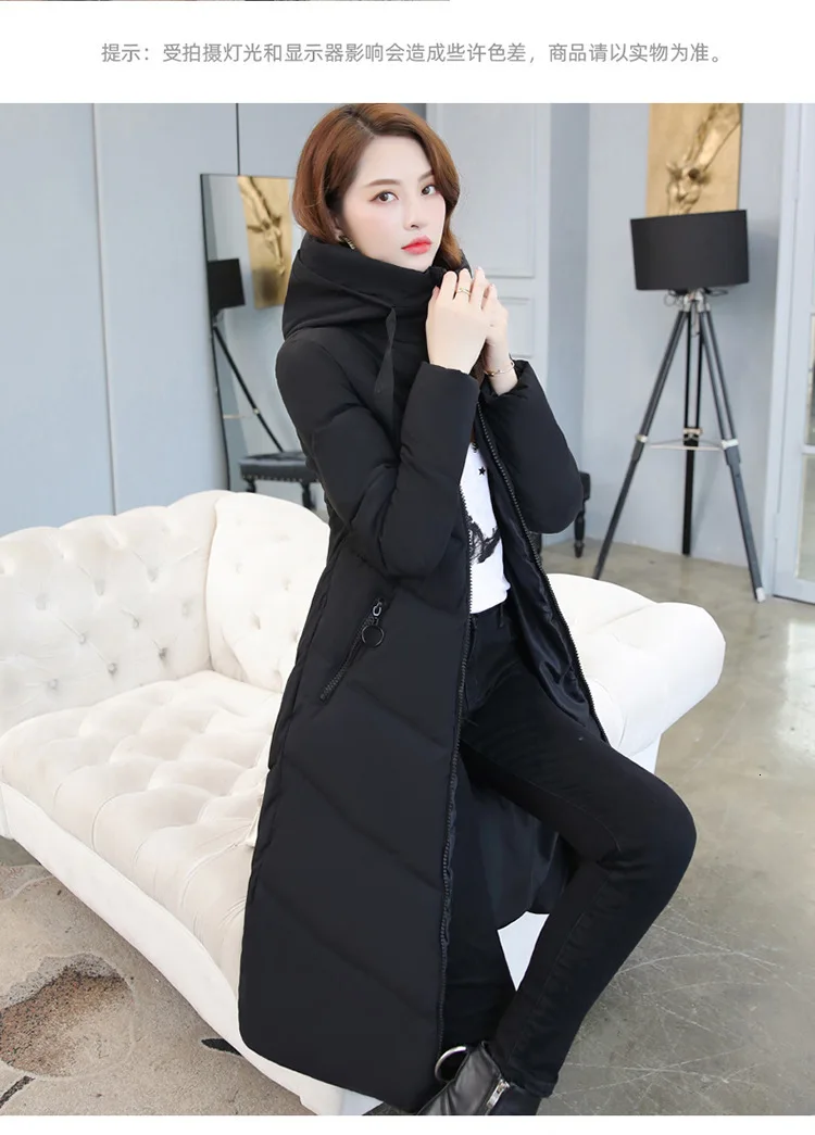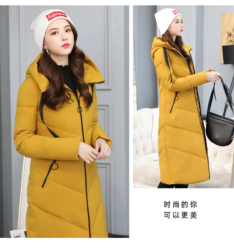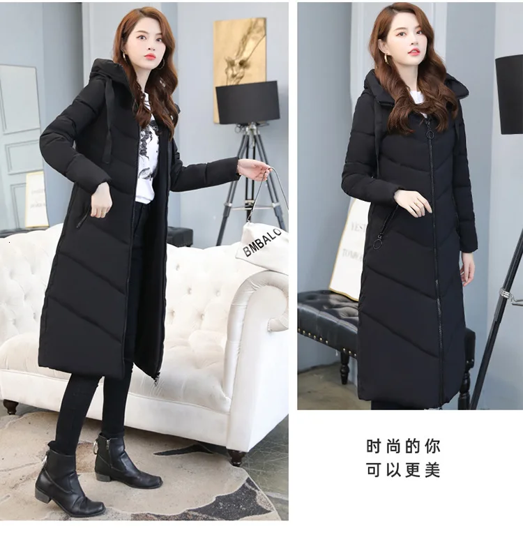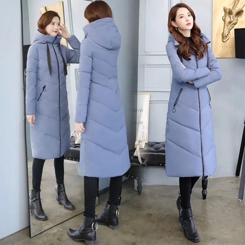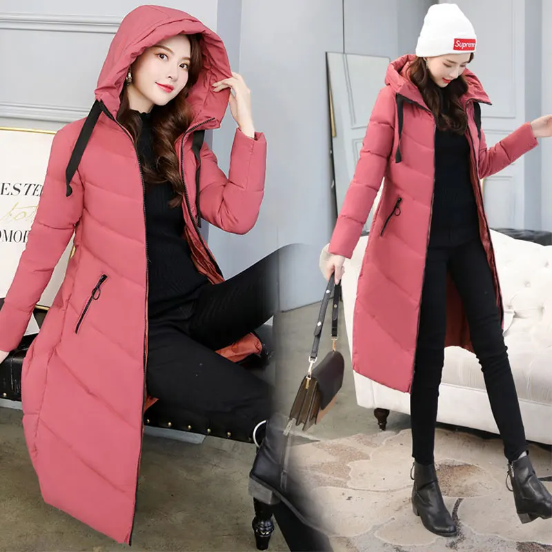 Женский длинный пуховик с капюшоном, пекарский пуховик большого размера, Студенческая Толстая теплая куртка, стеганая парка с хлопковой подкладкой и большим карманом