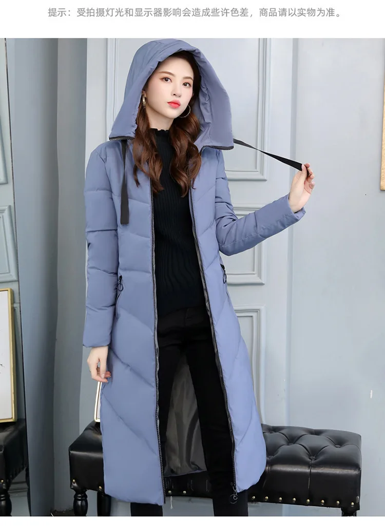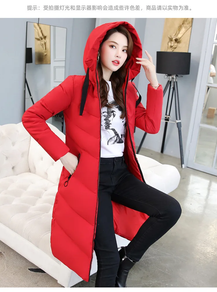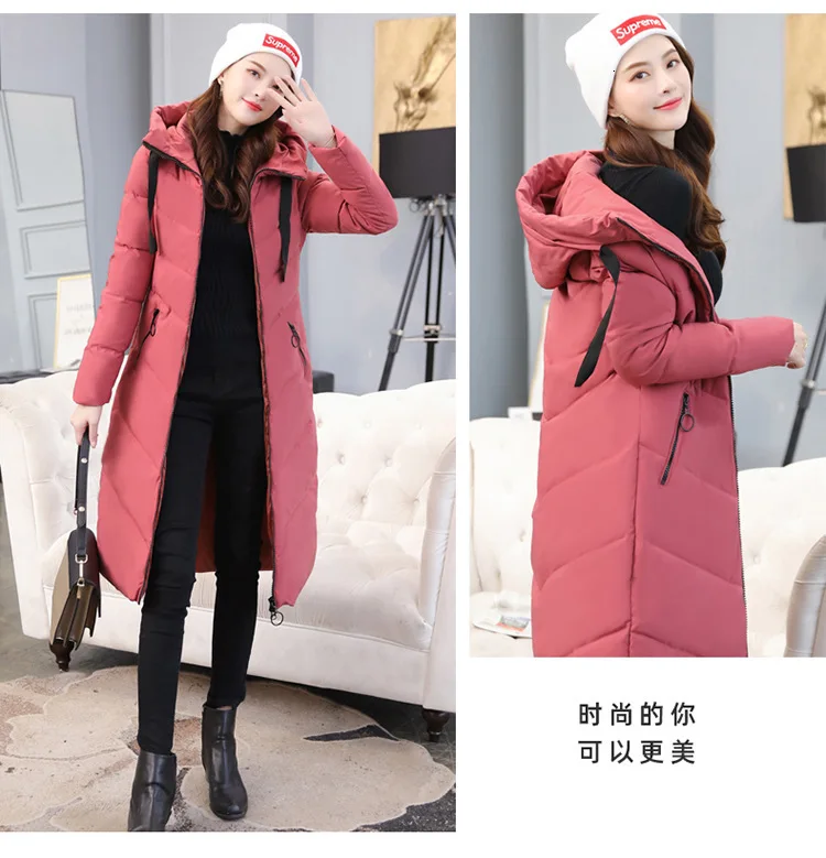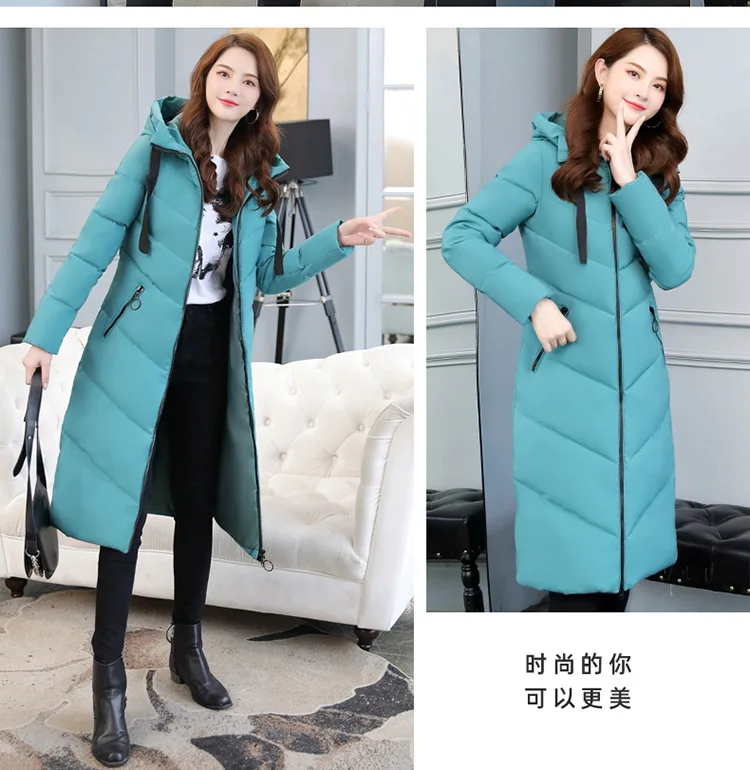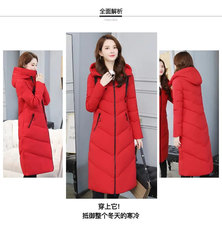 Женский длинный пуховик с капюшоном, пекарский пуховик большого размера, Студенческая Толстая теплая куртка, стеганая парка с хлопковой подкладкой и большим карманом