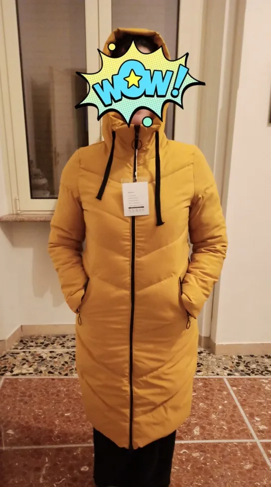 Очень долго шла посылка. Синий пуховик давно пришел, дочери такой же синий заказал, она получила, а жёлтый только сегодня получил.