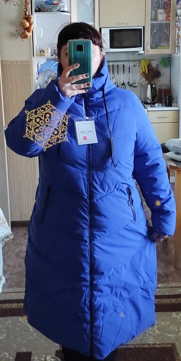 Очень понравился пошив и цвет и длина! Спасибо продавцу! На размер 54 6х хорошо! Можно было и 5х. Огонь пуховик!!!