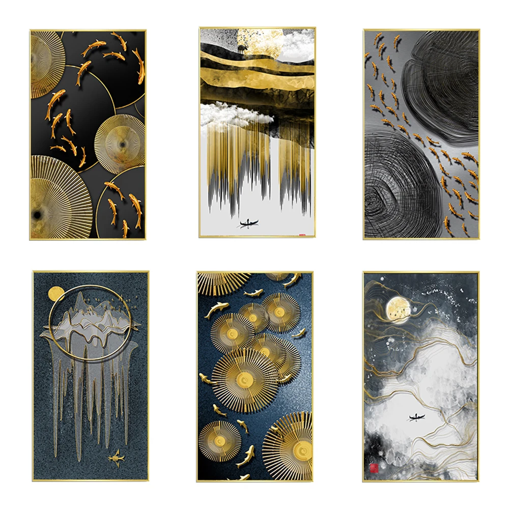 Домашний декор, холст, живопись, плакаты, принты, золотой цветок, солнечный свет, счастливая рыба, красивый пейзаж для крыльца, гостиной, Декор