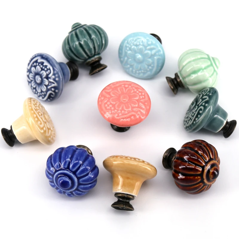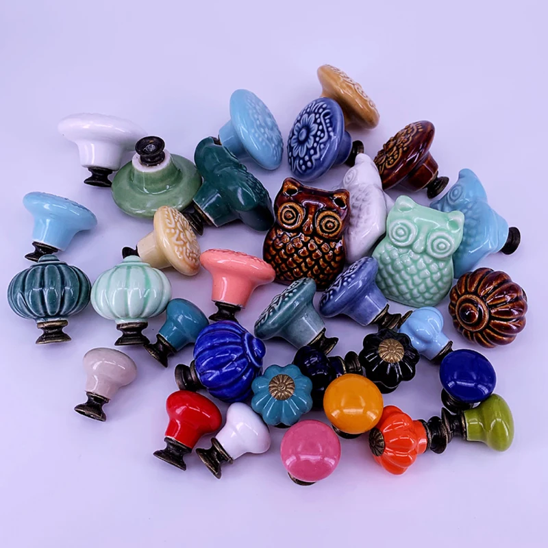 1x Сельский стиль керамические ручки для комода, ящики кухонные рукоятки шкафов, тыква Сова тиснение ручки шкафа, выдвижные ящики и ручкиОсобенности