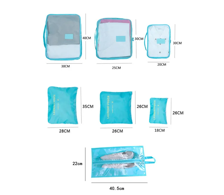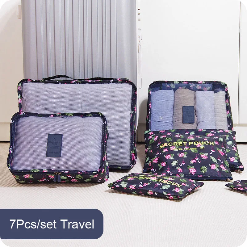 2019. 7 шт.компл. дорожая сумка с сеткой в круговой поездки вакуумные пакеты для одежды Набор для отделки чемодан-органайзер аксессуары косметическая сумка для хранения