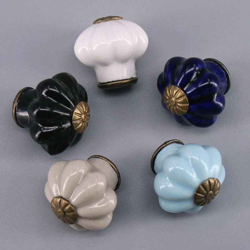 1 шт. Цветная Керамическая Ручка для шкафа, ручка для выдвижного ящика и ручка в виде тыквы, фарфоровая ручка для дверные ручки для шкафа детской мебели