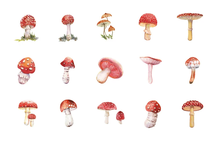 Коллекция грибов, декоративные наклейки, наклейки для скрапбукинга,...