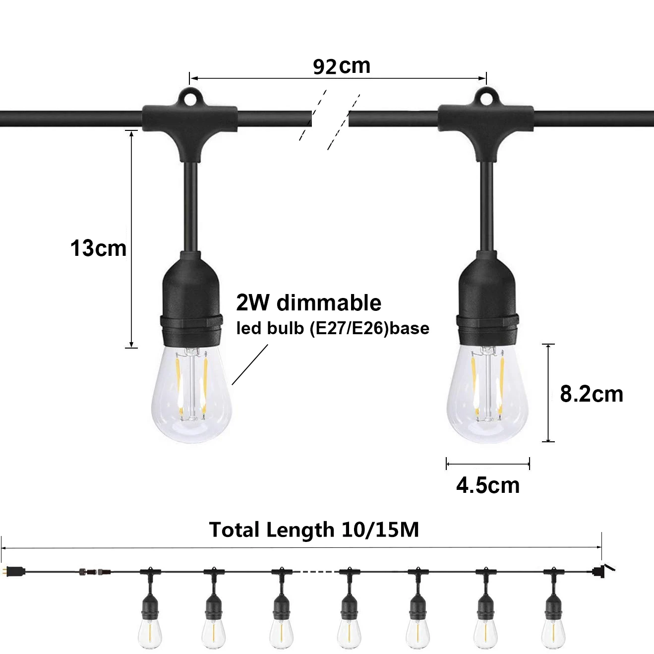 Гирлянда, светодиодная Водонепроницаемая в стиле ретро, 10 м15 м, S14