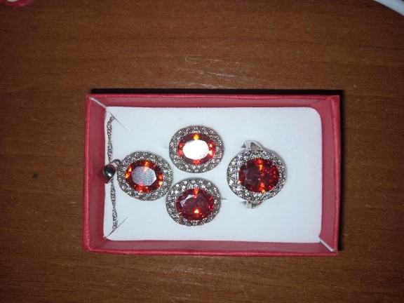 Получила посылку. Комплект отличный. Пришел в целости. Если кому пригодится информация, то размер кольца я заказывала 9, соответствует примерно российскому 18,5, даже чуть-чуть меньше. Сидит плотнее, чем 18,5. Спасибо продавцу.