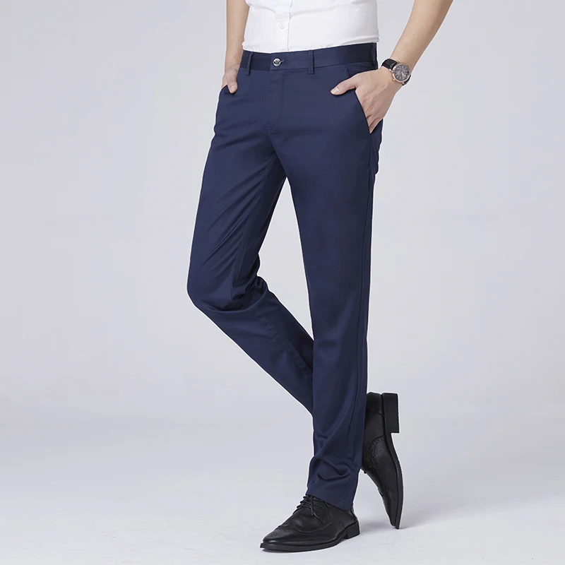 Мужские прямые брюки, из хлопка, длинные классические деловые повседневные брюки средней длины, весна-лето