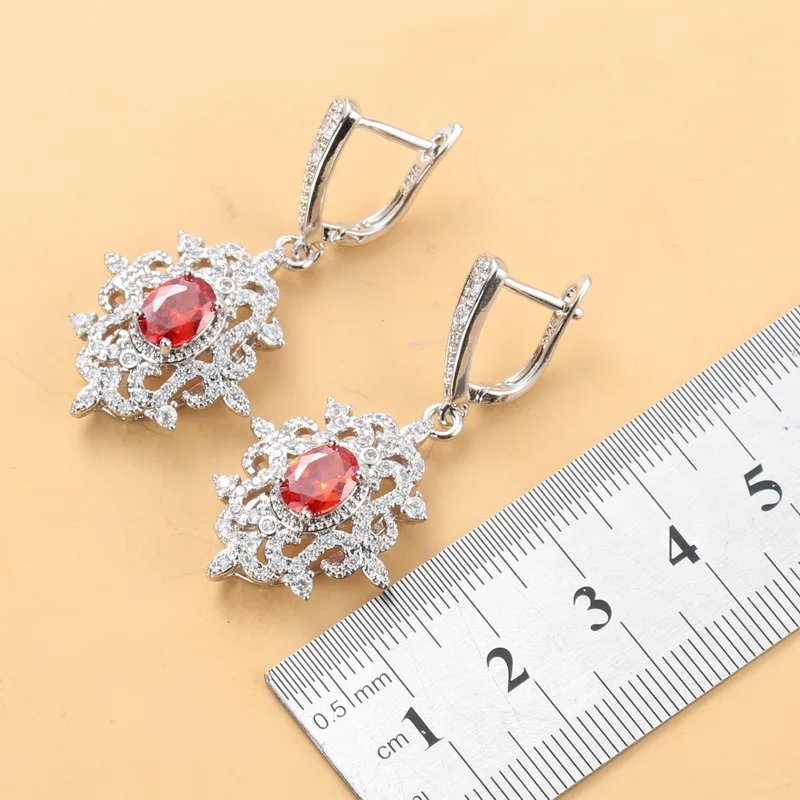 Женский Свадебный костюм, Элегантные Ювелирные наборы из красного граната с натуральным камнем, висячие серьги и ожерелье, наборы свадебных украшений