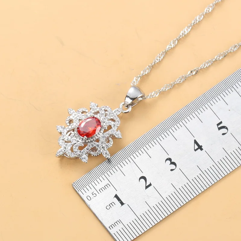 Комплект ювелирных изделий из серебра 925 пробы с гранатовым красны...