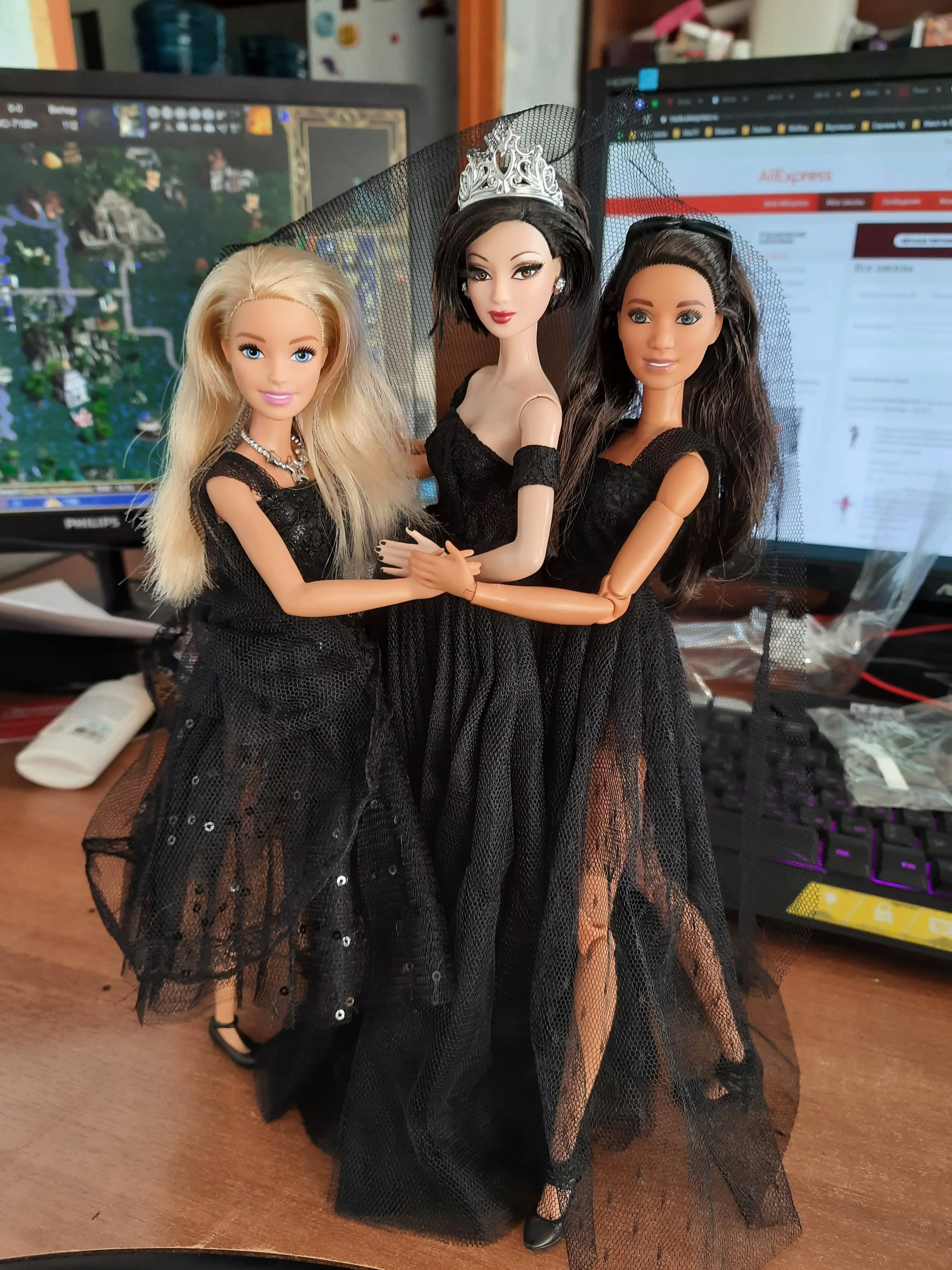 Свадебное платье для куклы Барби 16, Оригинальное вечернее платье BJD, юбка-баллон, одежда, аксессуары, одежда, черно-белое платье