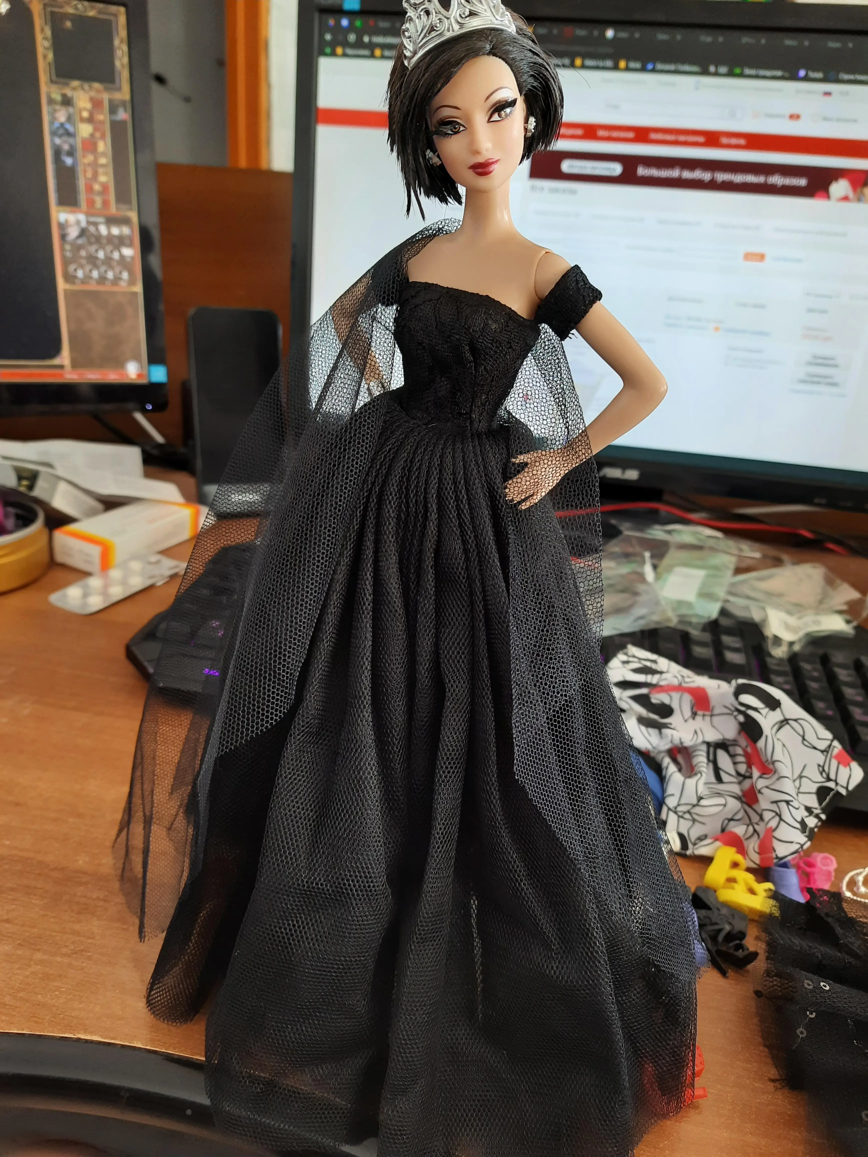 Платье просто шедевр. Я в шоке, насколько аккуратно и замечательно сшито платье. Пышность делается за счет того, что юбка сборена в районе талии, не подойдет на кукол не модельного телосложения. Но на модели - просто потрясающе! Советую всем эту красотищу