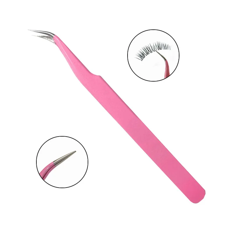 1 шт. розовый пинцет для бровей из нержавеющей стали пинцет для наращивания ресниц прямой или Изогнутый пинцет по выбору косметические инструменты для макияжа